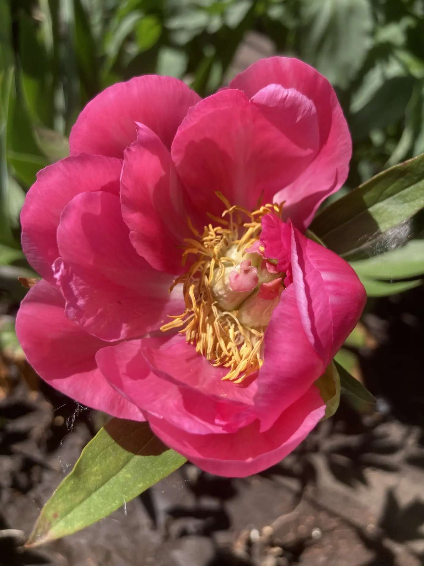 - Убрать укрытие и мусор: тщательно уберите прошлогоднюю листву, мульчу и ветки, которыми вы укрывали пионы на зиму. В этом мусоре зимуют споры грибков и личинки вредителей.