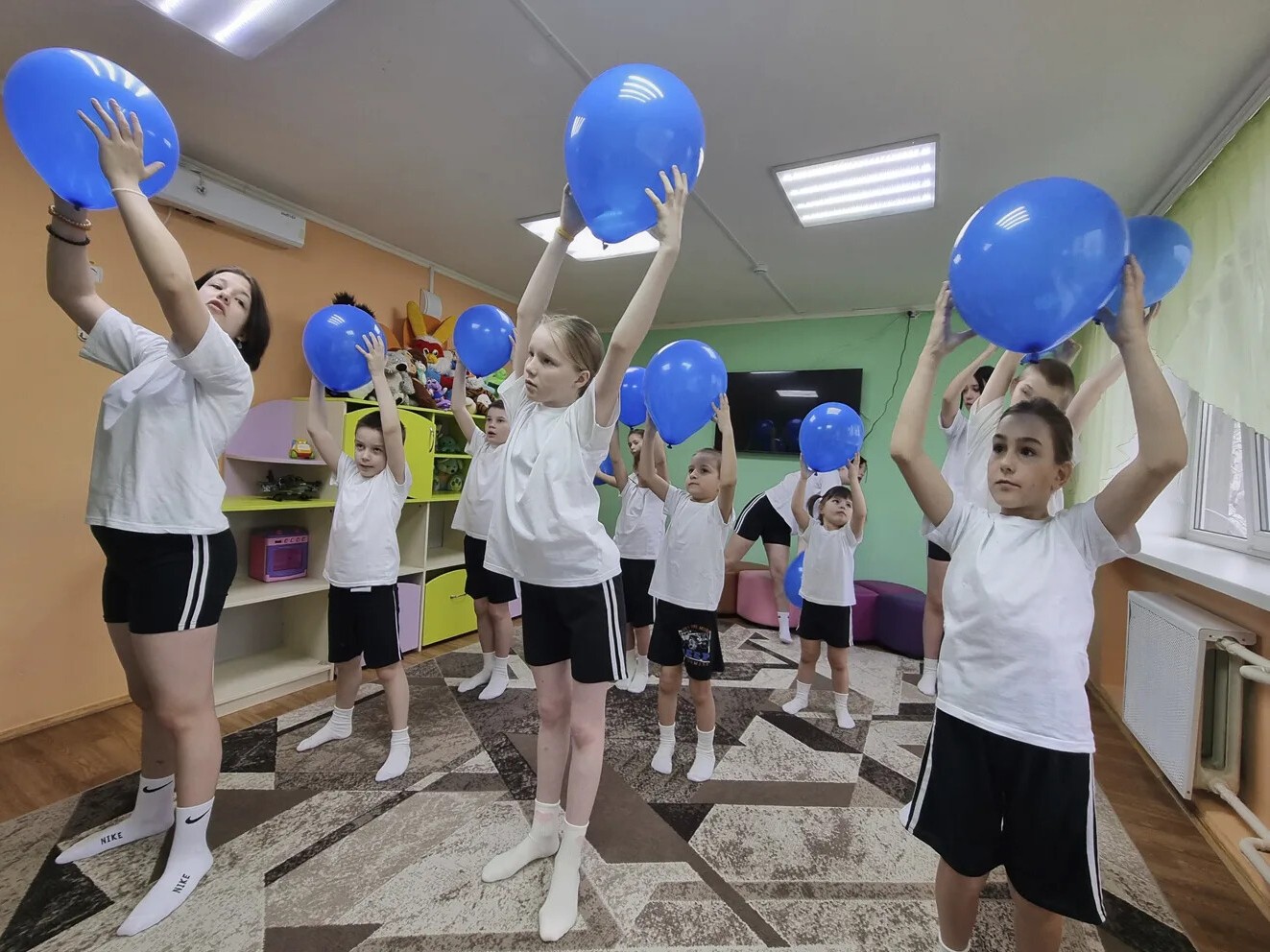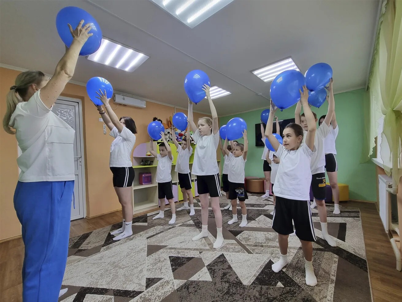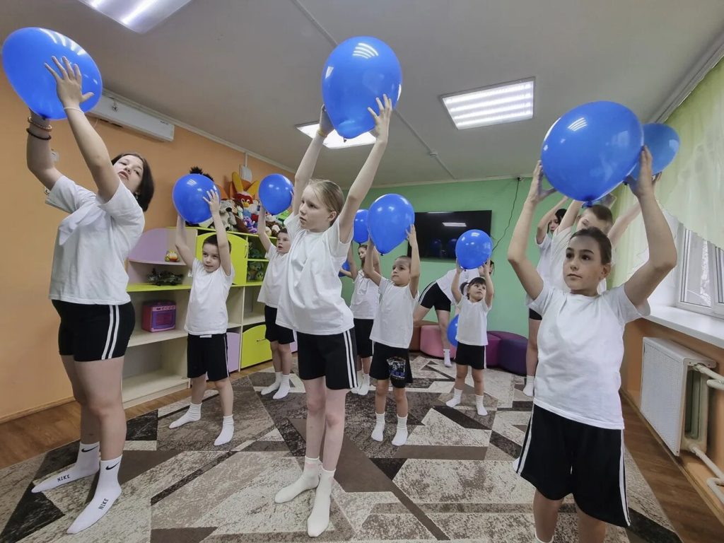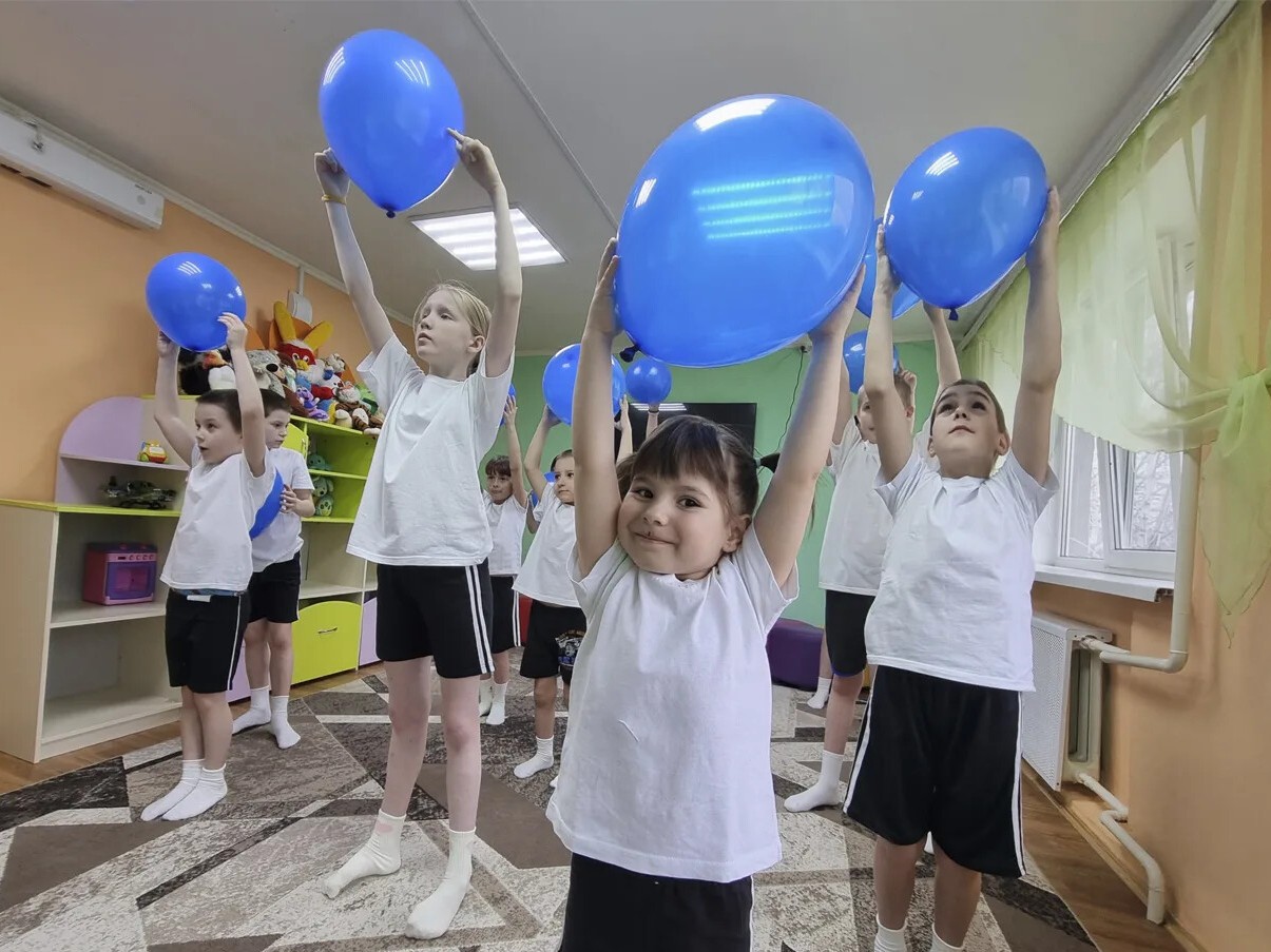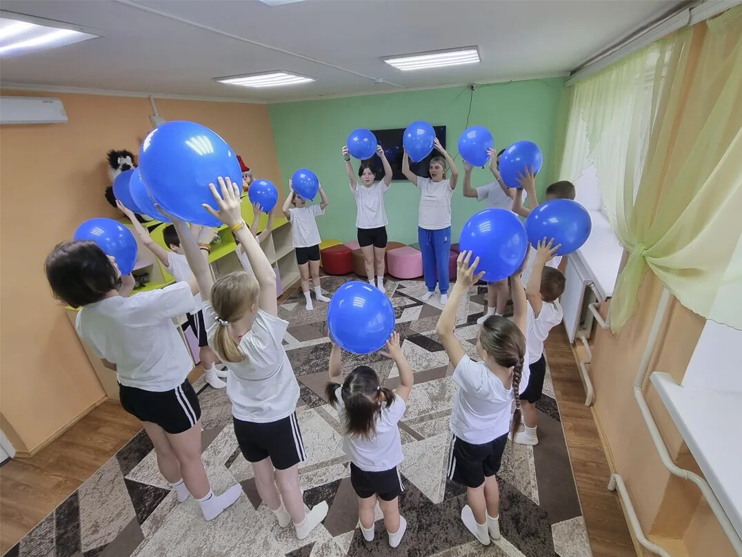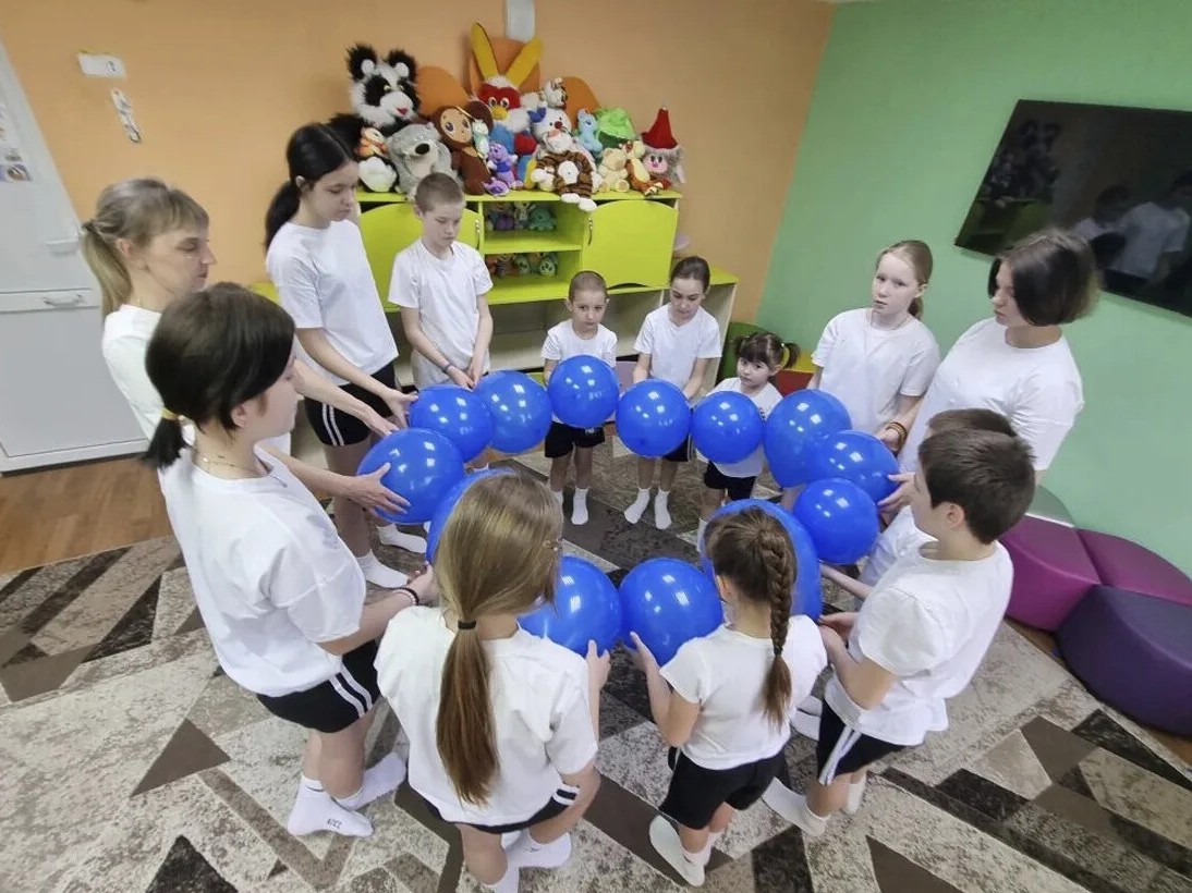 Под ритмичную музыку в руках у детей взмыли вверх синие шары. Цвет выбран не случайно: он напомнил всем, что наш мир огромен и разнообразен, и в нём есть место для каждого.