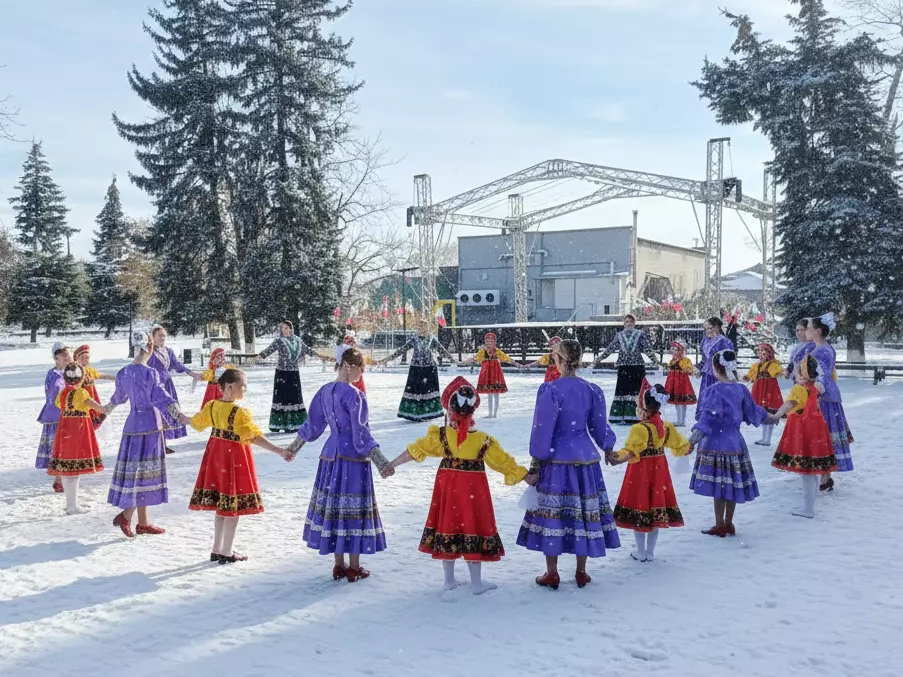 На главной площади у Дома культуры состоялся танцевальный флешмоб, объединивший жителей. Этот красочный хоровод стал живым символом сплочённости, взаимного уважения и дружбы между всеми народами, населяющими наш район и страну.