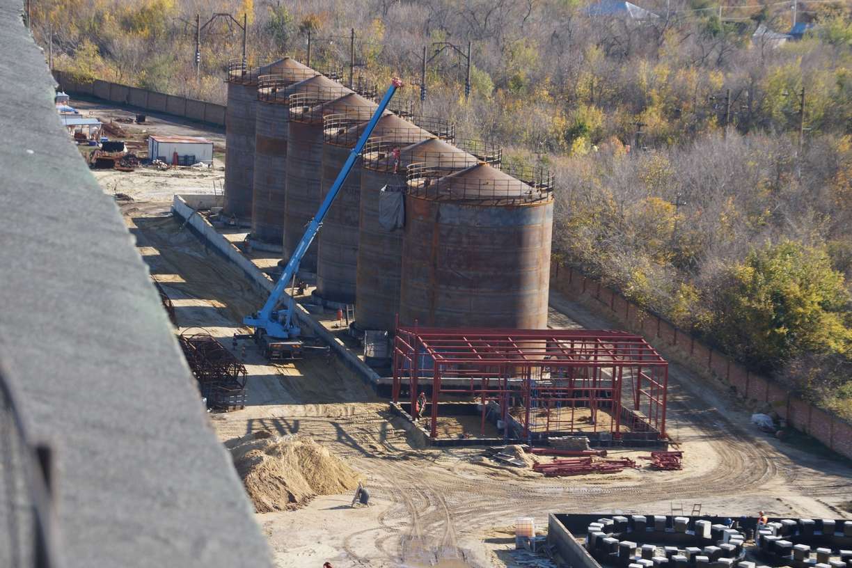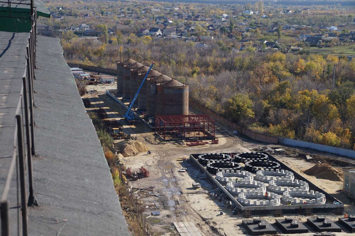 На площадке в Мальчевской сегодня разворачивается картина масштабного промышленного строительства.