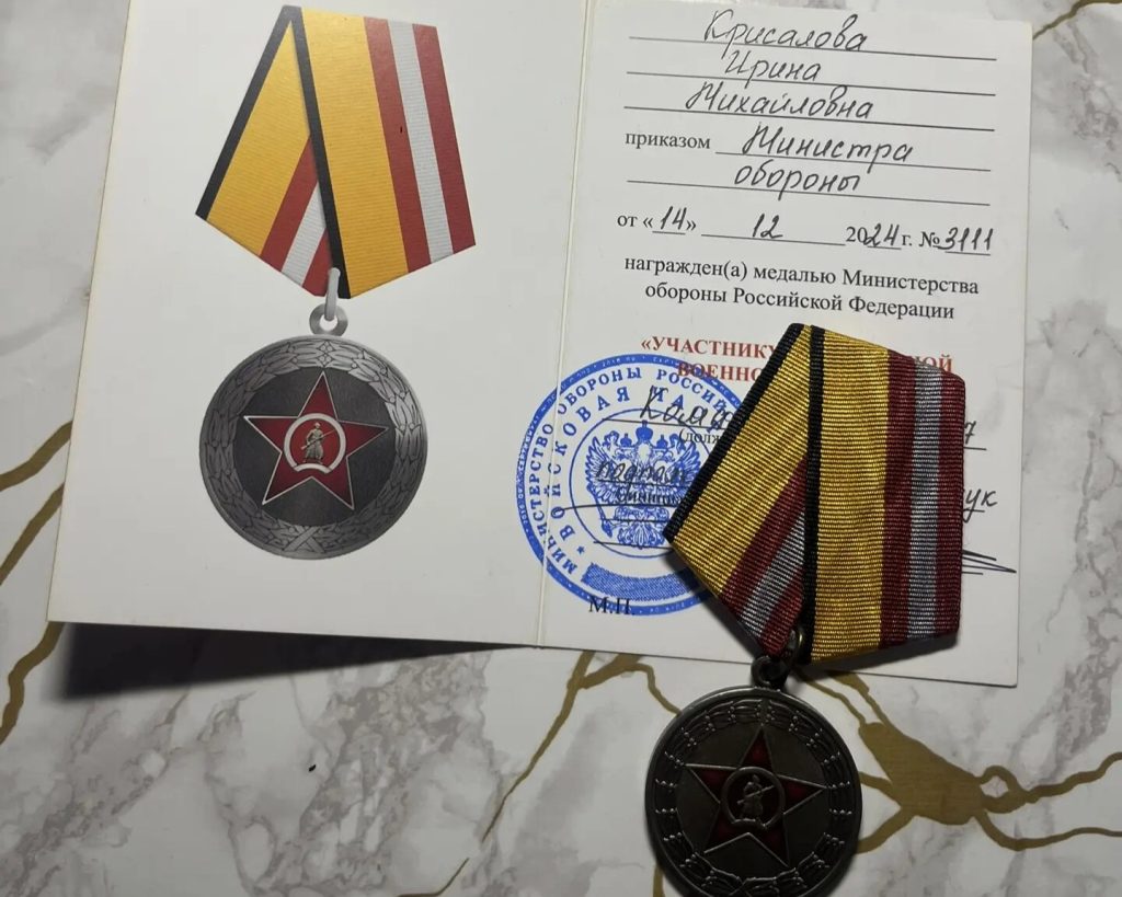 В этом году 8 Марта для Ирины Михайловны Крисаловой стало по-настоящему особенным днём. В Международный женский праздник она была удостоена медали Министерства обороны РФ «Участнику специальной военной операции». Цветы, поздравления и высокая награда — всё слилось воедино в этот весенний день.