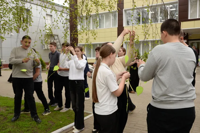 Завершилось мероприятие фотосессией в зоне «Народный кадр» и древним обрядом: ребята написали пожелания России на бумажных листиках, прикрепили их к разноцветным лентам и завязали на веточке берёзы — символе русской природы.