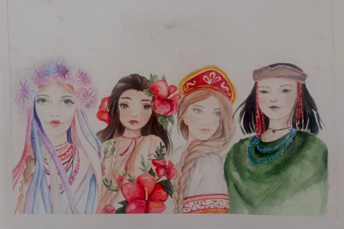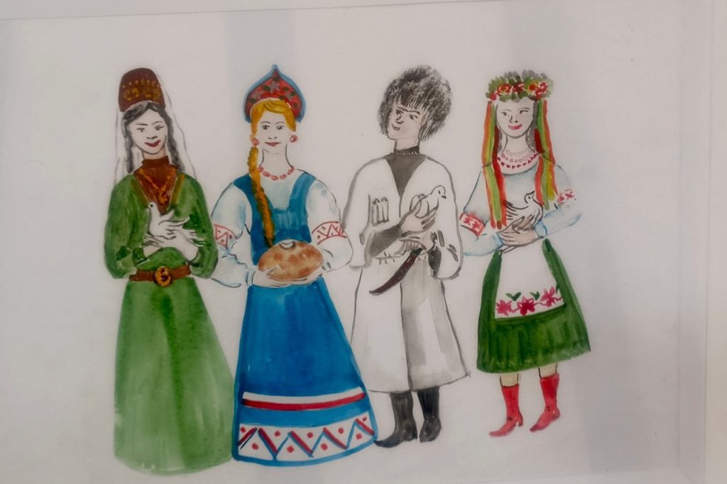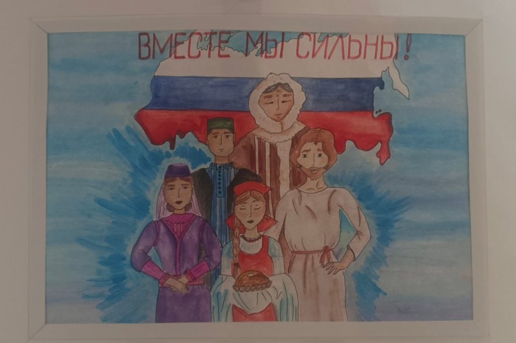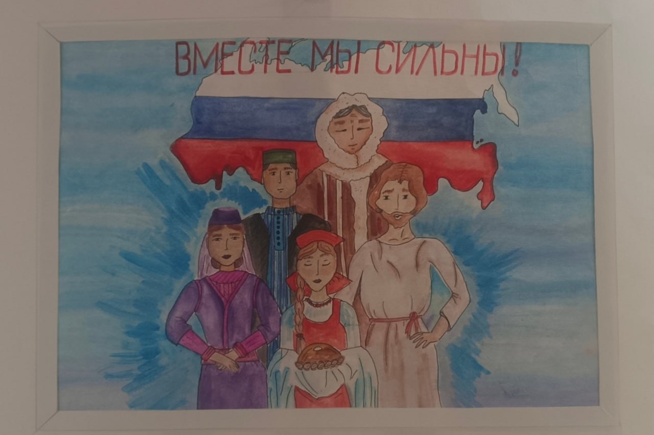 Праздник начался с выставки работ учащихся отделения изобразительного искусства. Своё творчество представили юные художники: Дарья Сухова, Лидия и Полина Молородовы, Кира Харина, София Бурлакова, Виктория Пилипенко и Мария Харченко. Их работы, посвящённые многообразию культур, создали на сцене атмосферу праздника и единства.