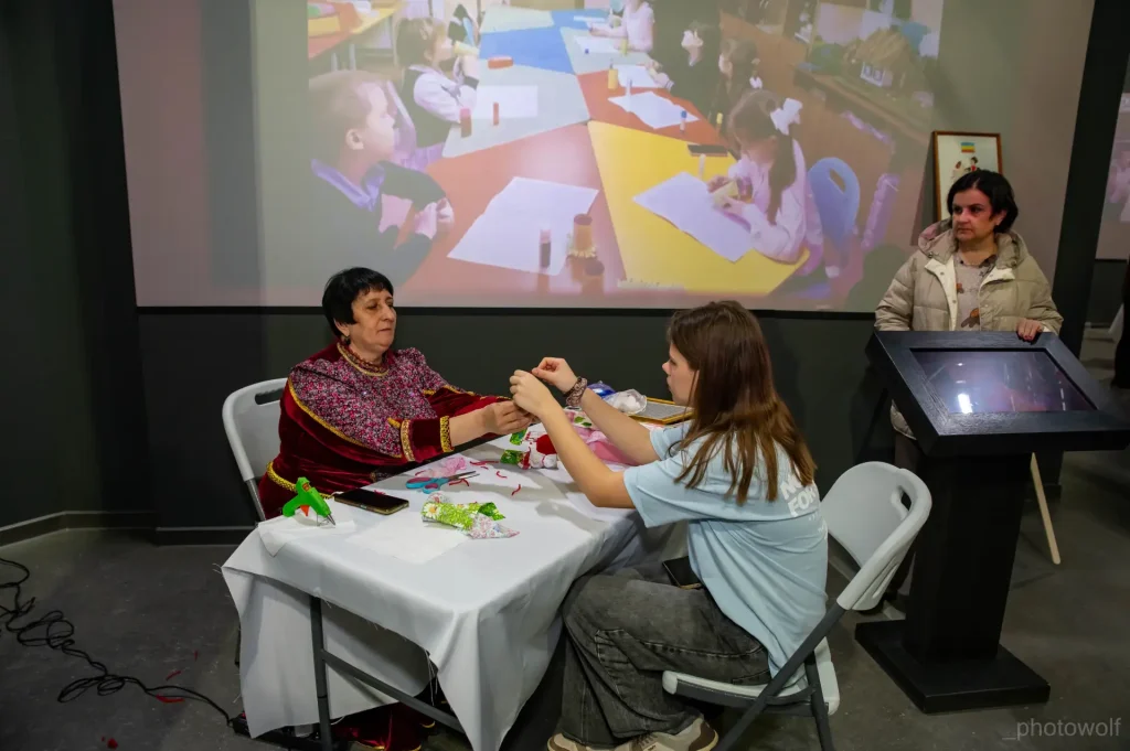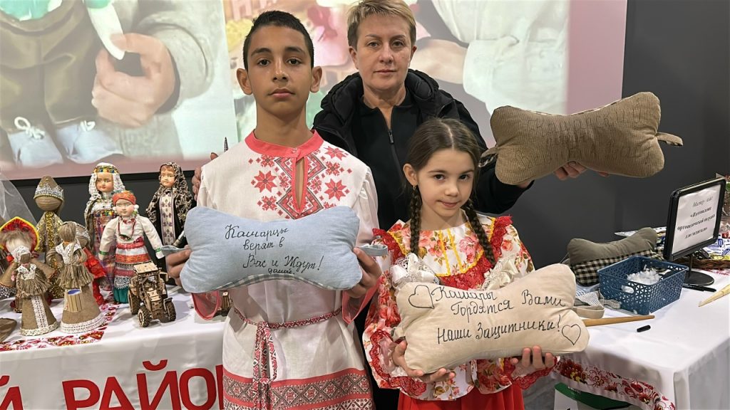 Центр внешкольной работы развернул сразу три интерактивные площадки. Взрослые и дети с удовольствием учились делать ортопедические подушки для госпиталей, собирать «мешочки добра» и расписывать значки с гербом родного района. Особый восторг вызвала выставка детских работ: яркие куклы разных народов, созданные руками обучающихся объединения «Рукодельница» под руководством педагога Т.М. Донченко, и деревянные модели сельхозтехники, которые собрал своими руками Егор Акалелов.
