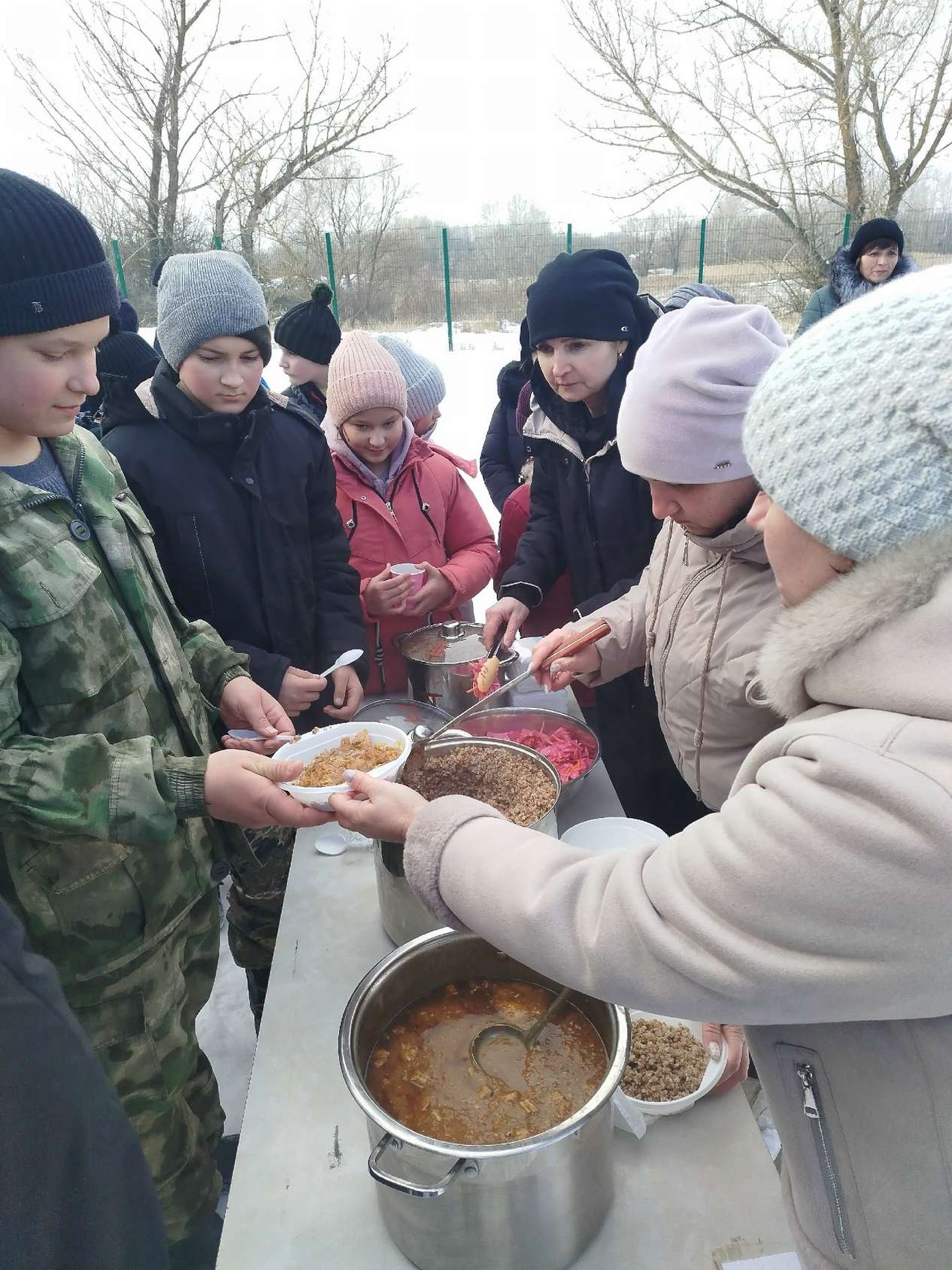 А какой же военный праздник без настоящей полевой кухни? После активных соревнований всех ждал сюрприз — горячий чай и солдатская каша на свежем воздухе. Уставшие, но довольные ребята грели руки о кружки и наперебой делились впечатлениями.