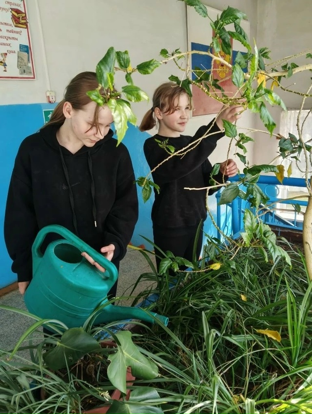 А после интеллектуального поединка девочки взялись за доброе дело — полили цветы в школе.