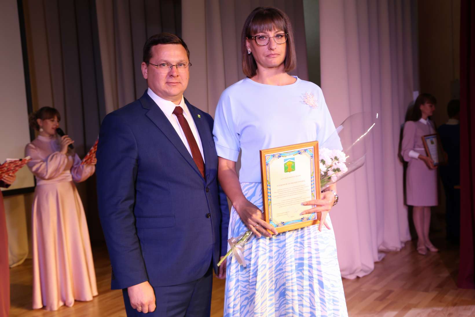 Чествовали в этот день и молодых учителей, для которых 1 сентября этого года стал и Днём их рождения, как педагога. Это Науменко Ксения Витальевна, учитель начальных классов Первомайской школы, Мисливцева Стефания Федоровна, учитель начальных классов Верхнемакеевской школы, Двуреченская Яна Владиславовна, педагог-психолог Верхнесвечниковской школы, Садкина Александра Константиновна, учитель математики, учитель начальных классов Кривошлыковской школы, Паршина Виолета Анатольевна, учитель начальных классов Верхнемакеевской школы.
