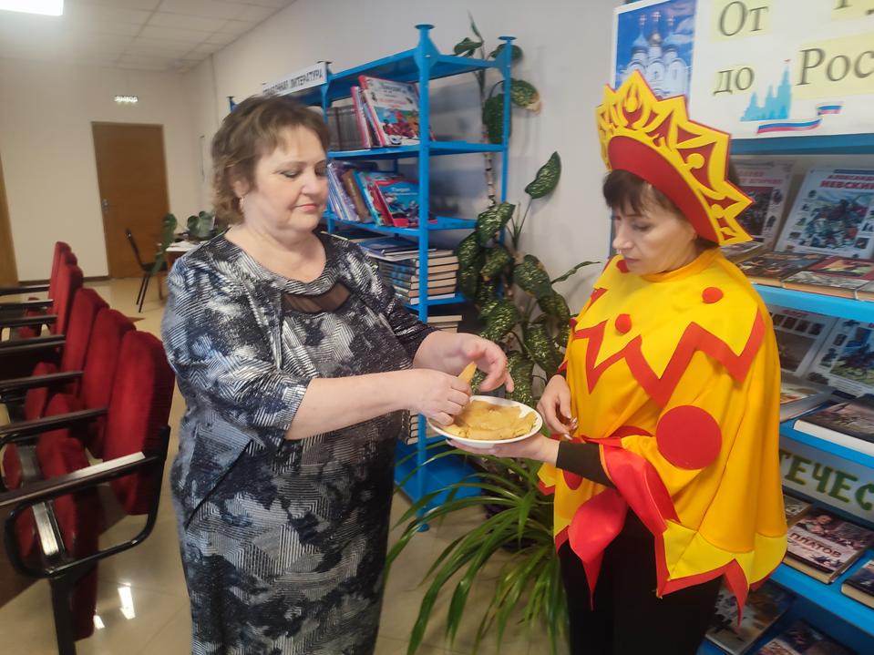 Но в этом году праздник вышел за привычные рамки. С песнями и хорошим настроением масленичная команда отправилась поздравлять земляков прямо на рабочие места. Гостей встречали в Верхнемакеевской библиотеке и в местной пожарной части.