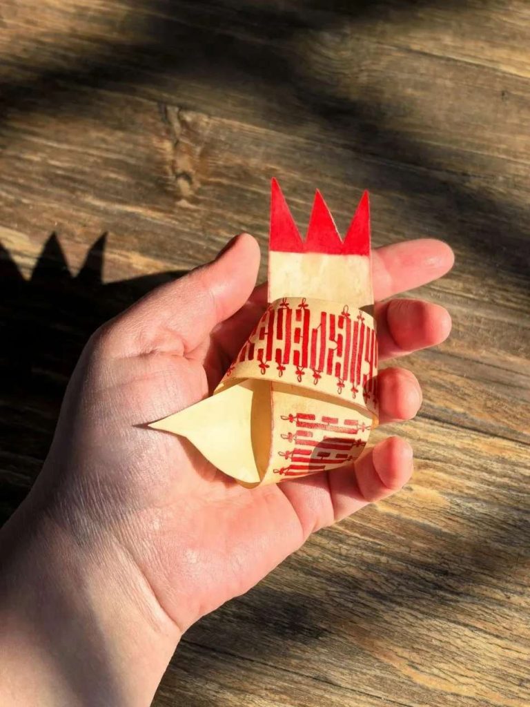 Шаблоны пернатых распечатали на цветном принтере. Дети вырезали их, дорисовали хвостики, глазки и сложили по инструкции. У каждого получилась своя уникальная птичка. Их можно дарить вместе с пасхальными яйцами и куличами, а также украшать дом к празднику — подвешивать к окну или на веточку.