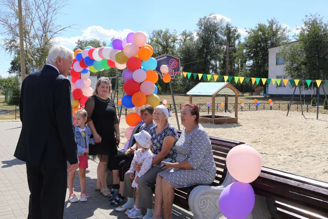 На праздничное мероприятие по случаю открытия площадки собрались жители села. Родителям и детям, которые пришли оценить новое место для игр и отдыха, хочется поскорее пробраться туда. Веселые конкурсы, ростовые куклы, игры – сегодня все для юного поколения. Столько счастья на их лицах.
