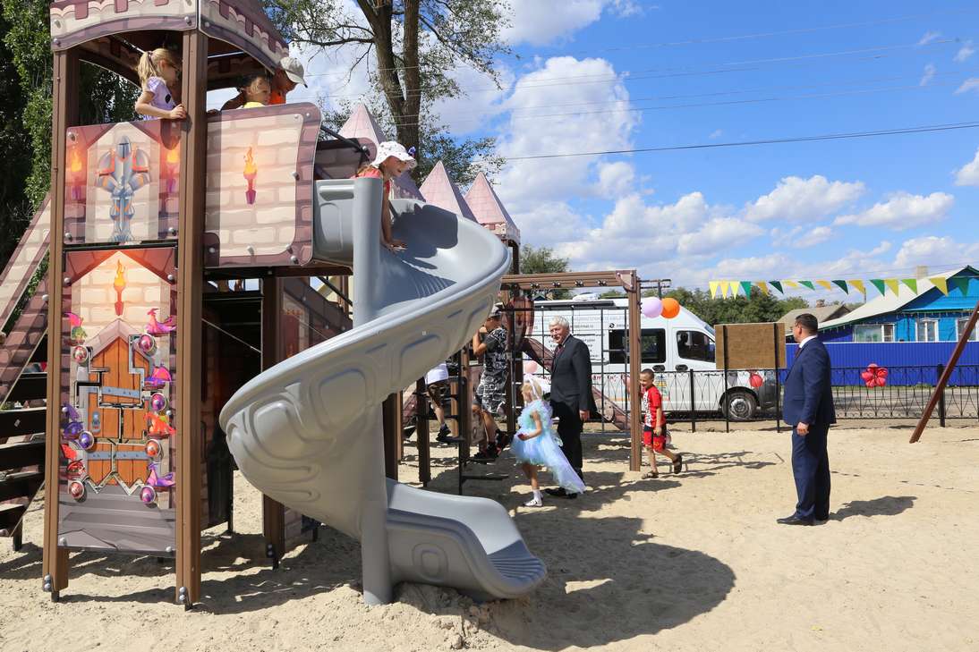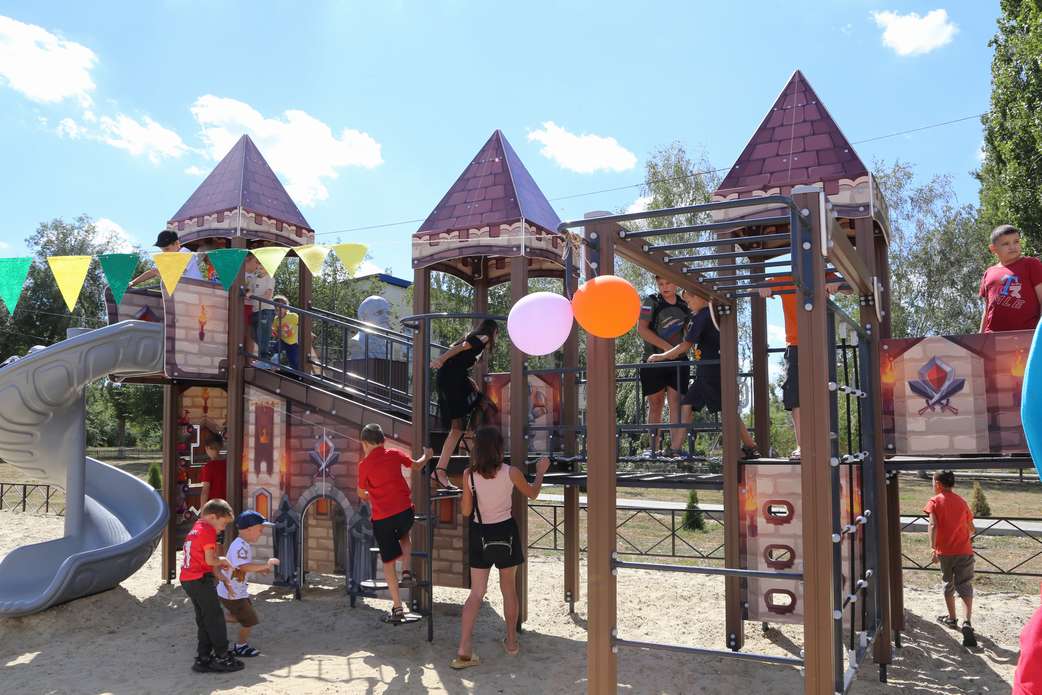 Открытие новой многофункциональной детской площадки для небольшого села — событие долгожданное. И для детворы, и для взрослых это настоящий праздник. Мальчишки и девчонки получили в подарок настоящий сказочный городок. Средневековой замок с четырьмя башнями, качели «Маятник» и «Гнездо», карусель, песочница – глаза разбегаются, не знаешь в какую сторону смотреть. Все яркое, красивое – душа радуется. Любители здорового образа жизни тоже найдут, чем заняться – небольшой спортивный комплекс здесь тоже имеется.