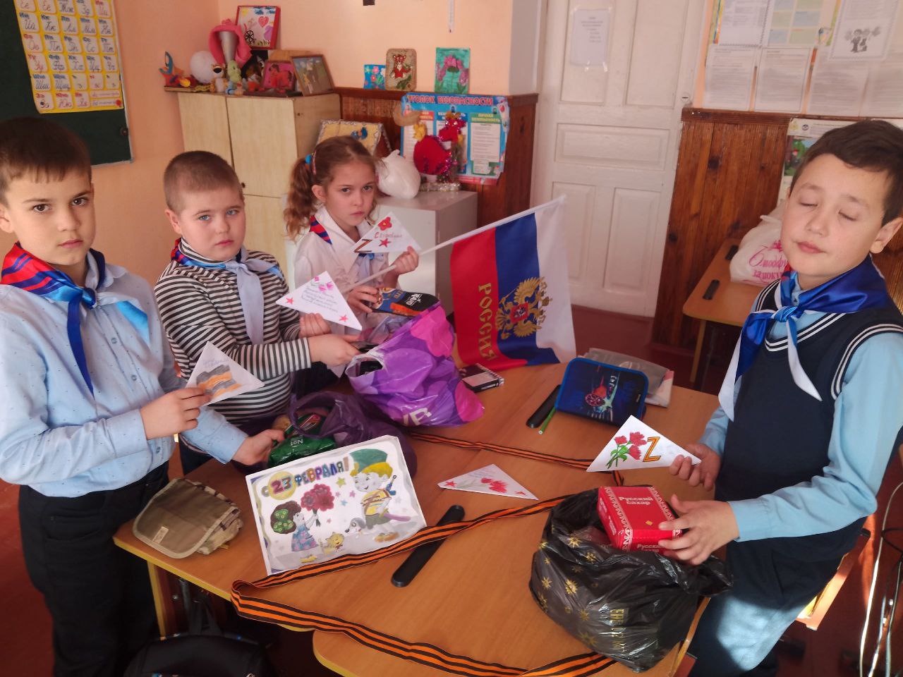 Но письмами дело не ограничилось. На переменах школьники плели маскировочные сети, а также собрали гуманитарную помощь. Главной целью акции стало воспитание у подрастающего поколения гордости за свою страну и её защитников.