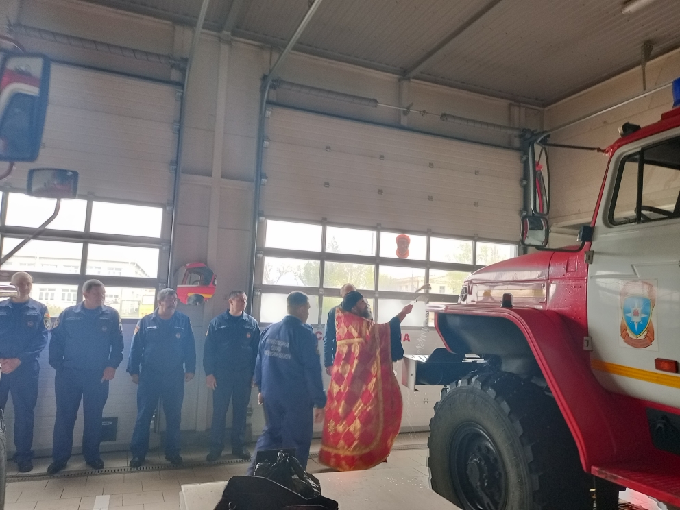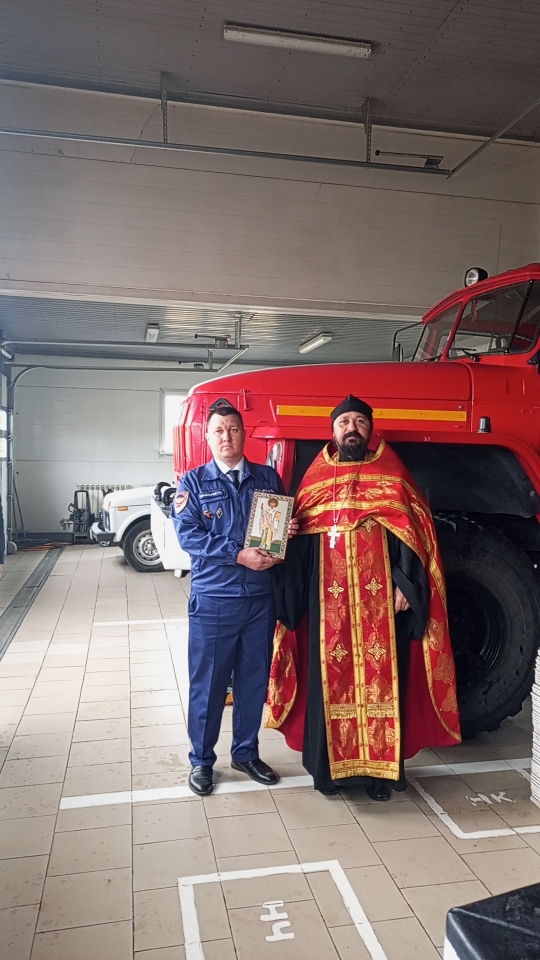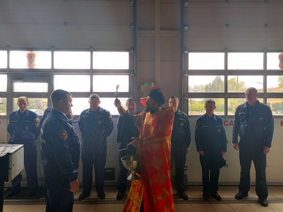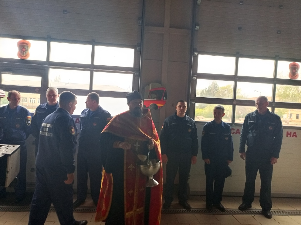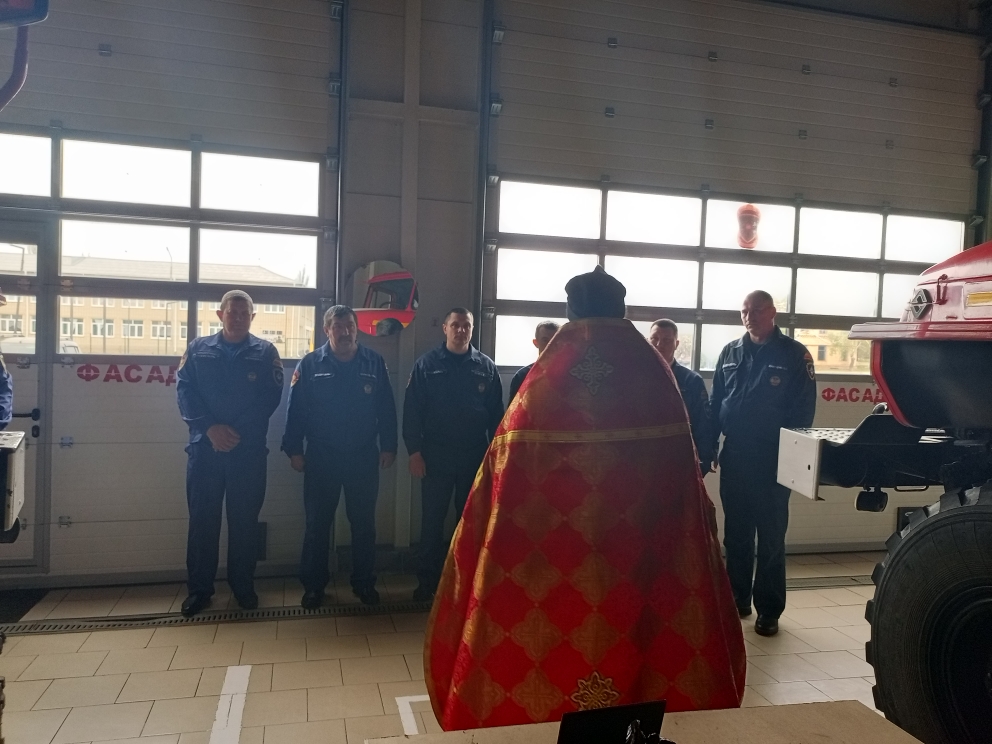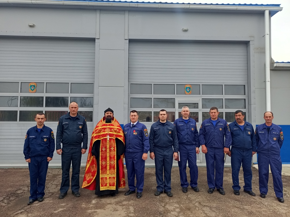 В день профессионального праздника настоятель храма архангела Михаила села Первомайское Кашарского района иерей Иоанн Агаев по доброй традиции поздравил сотрудников пожарной охраны.
