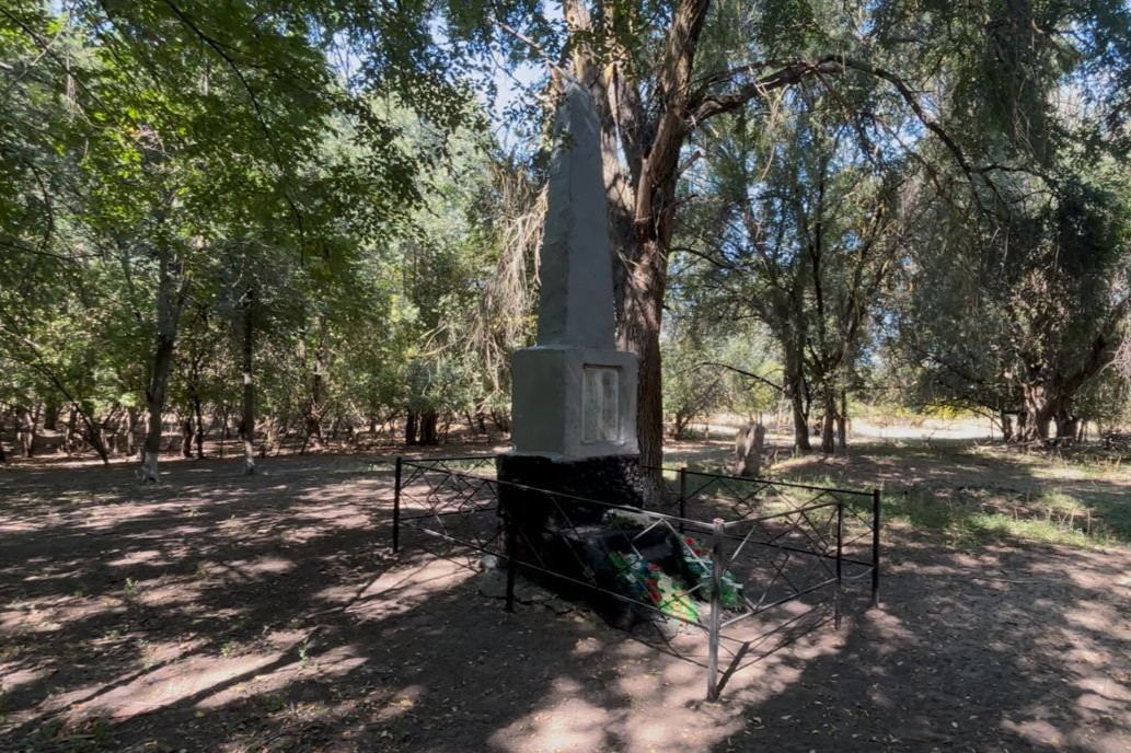 Здесь среди буйной растительности стоит памятник погибшим учителям и ученикам школы, воздвигнутый в 1965 году. В его основание положили капсулу с именами погибших. Это был трехступенчатый обелиск. Замысел ступеней был таков: он говорил о преемственности трех поколений, объединенных одним общим делом.