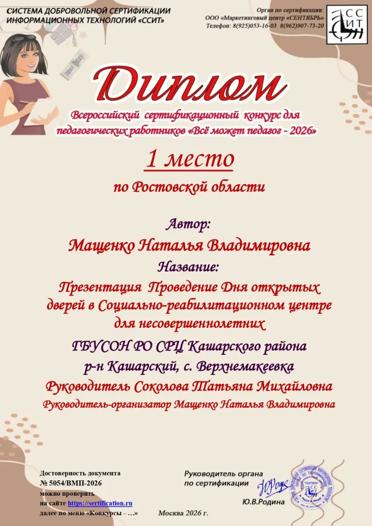 Педагоги социально-реабилитационного центра для несовершеннолетних Кашарского района достойно представили регион на Всероссийском сертификационном конкурсе «Всё может педагог – 2026».
