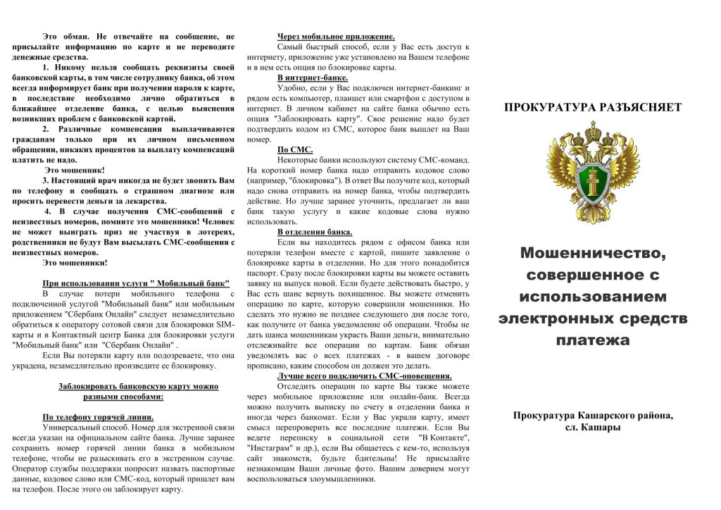 Главная » #Прокуратура района Прокуратура Кашарского района: мошенничество, совершенное с использованием электронных средств платежа На чтение 1 мин Просмотров 20 Опубликовано 16.04.2026 20:45 Осторожно, мошенники! Новости СМИ2