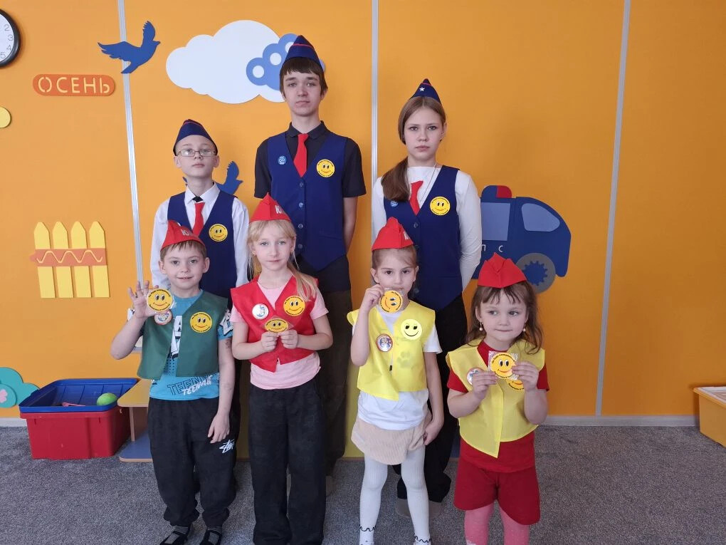 Юные помощники инспекторов движения в доступной и увлекательной форме напомнили дошколятам основные правила дорожной безопасности. Вместе они разобрали виды дорожных знаков, вспомнили сигналы регулировщика и обсудили, почему так важно соблюдать правила дорожного движения.