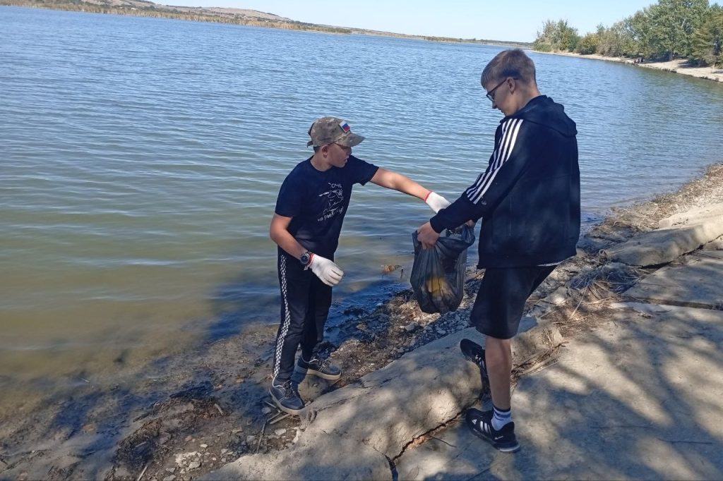 Ученики 7 «а» класса Кашарской школы организовали экологическую акцию «С заботой о водохранилище» и очистили берег водоема от мусора.