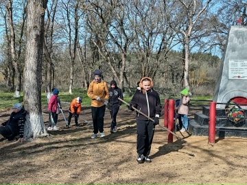 Ребята привели в порядок памятные места на территории села: убрали сухую листву, подмели дорожки, очистили постаменты. Каждый из них понимал: чистота у памятника — это не просто уборка, а дань уважения тем, кто ценой своей жизни защитил Родину.