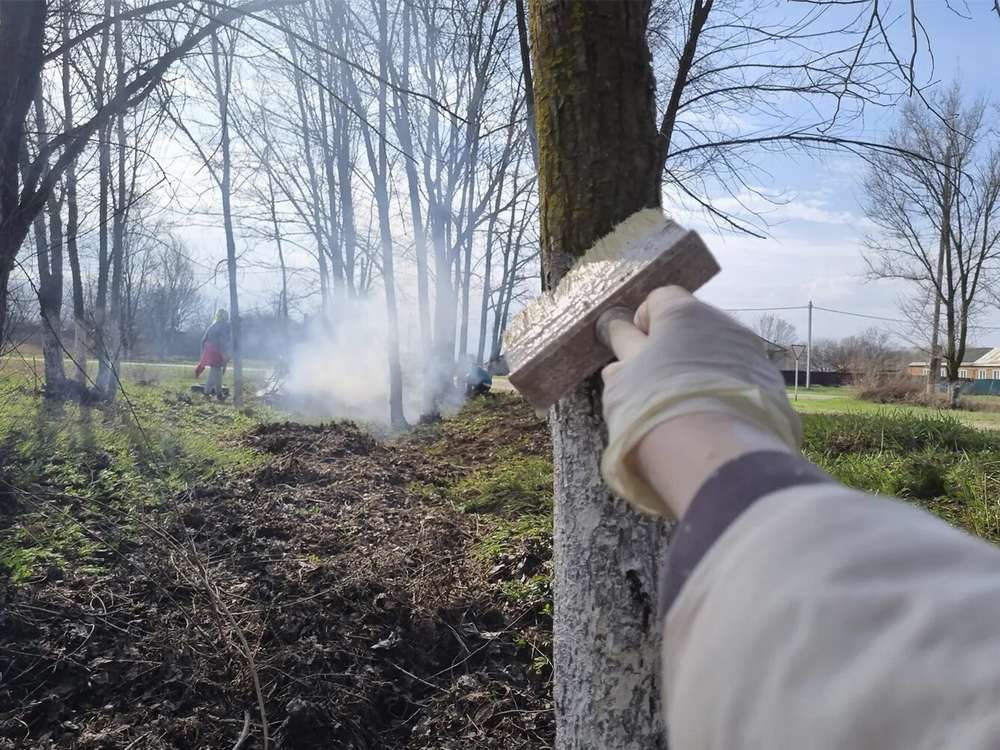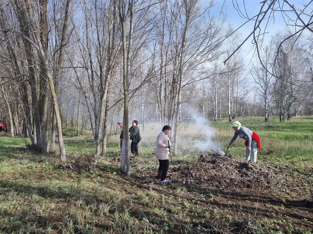 Совместными усилиями был выполнен большой объём работ: вырубили молодую поросль, собрали и вывезли бытовой мусор, скопившийся за зиму, убрали опавшие листья и провели побелку деревьев на территории берёзового парка.