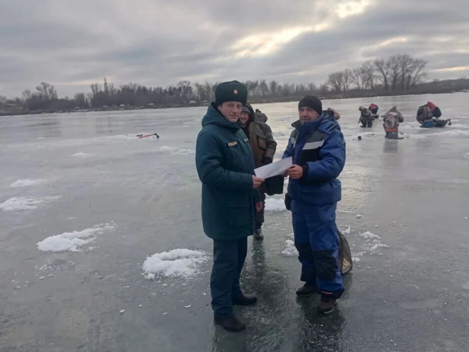 Сотрудники 58-й пожарно-спасательной части вышли на лёд Кашарского водохранилища, чтобы провести профилактическую работу с любителями зимней рыбалки. Несмотря на календарную зиму, погода вносит свои коррективы, и лёд уже не везде надёжен.