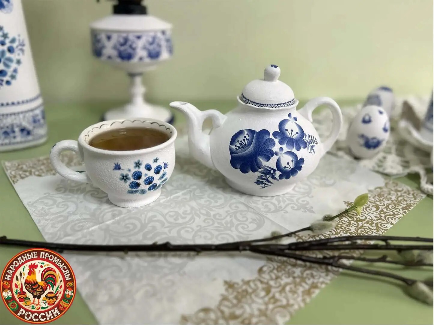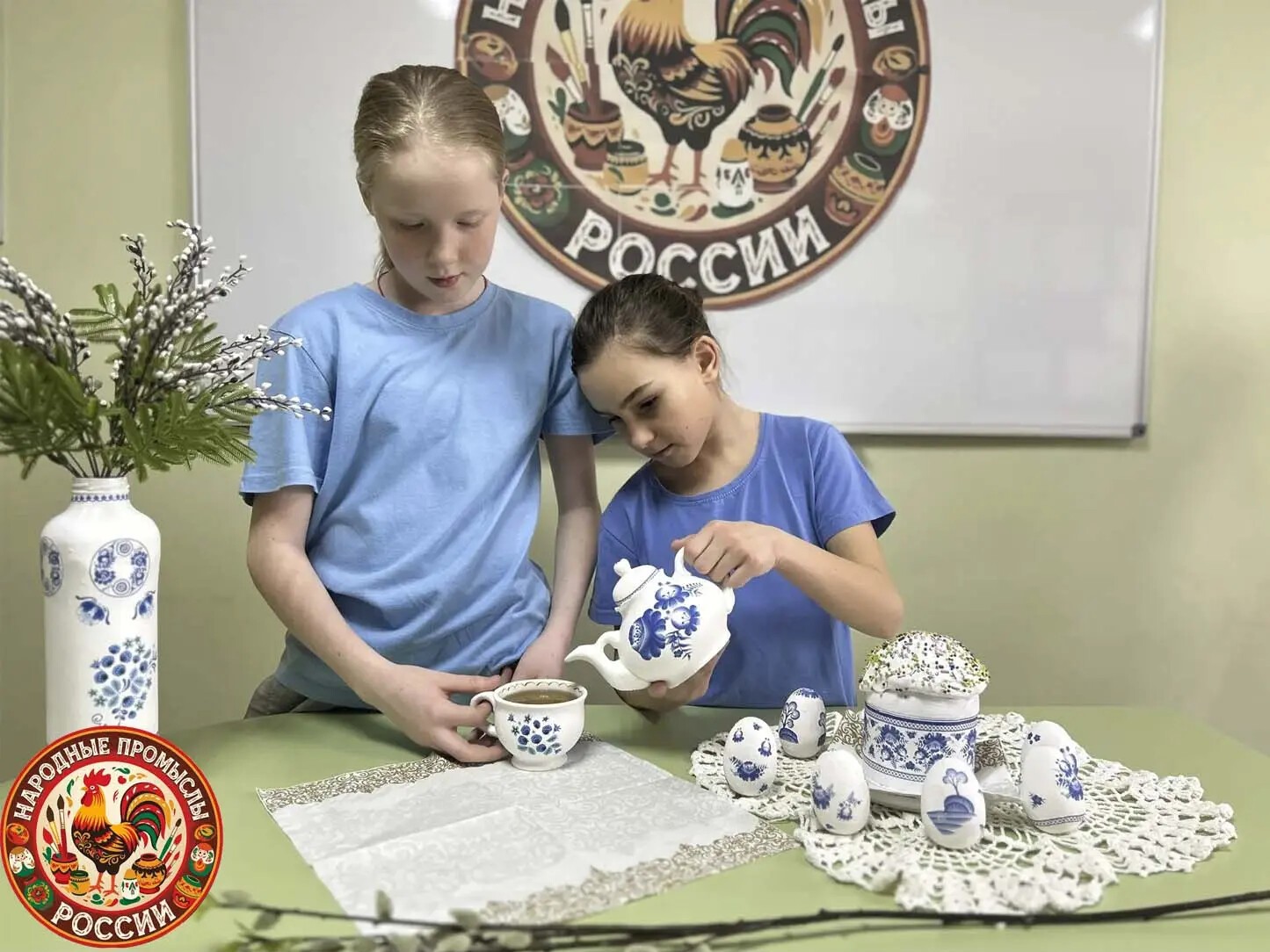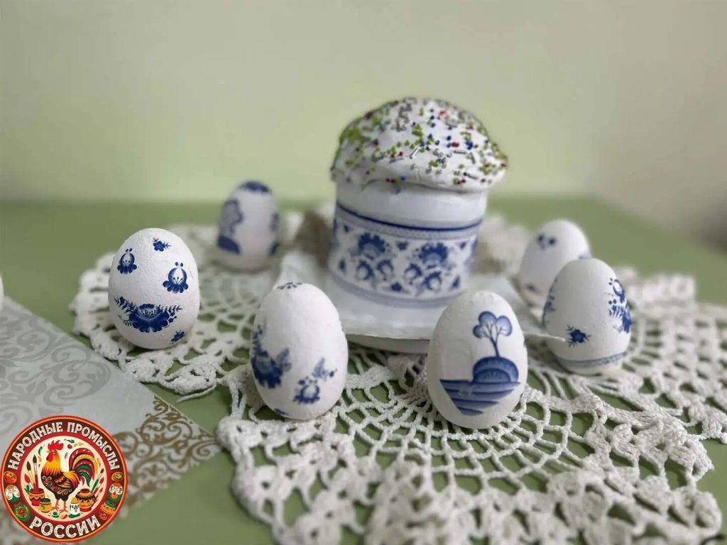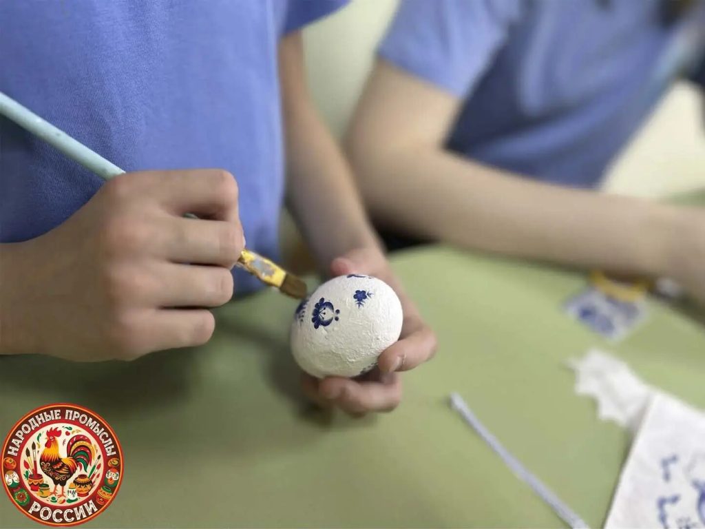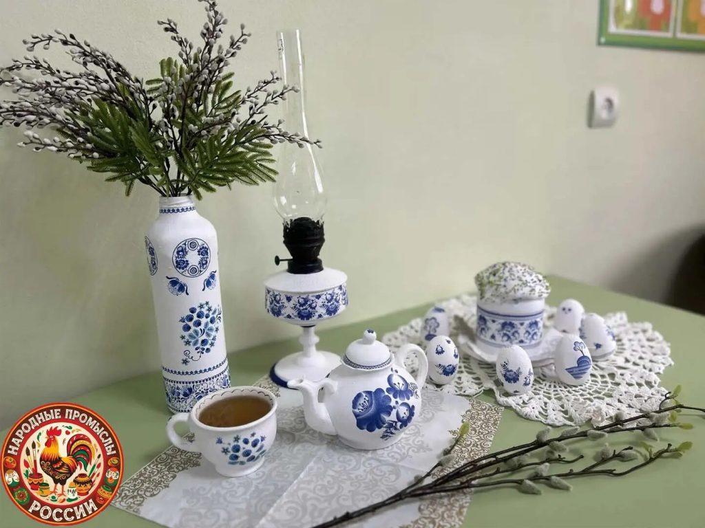 Под чутким руководством педагогов ребята создали настоящую творческую композицию. В технике декупаж с элементами традиционной гжельской росписи они изготовили декоративные атрибуты к Пасхе. В их работе органично соединились узнаваемые черты русского народного промысла — кобальтово-синие узоры на белом фоне и изящные растительные мотивы — с искусством декорирования предметов путем наклеивания изображений и последующего покрытия лаком.