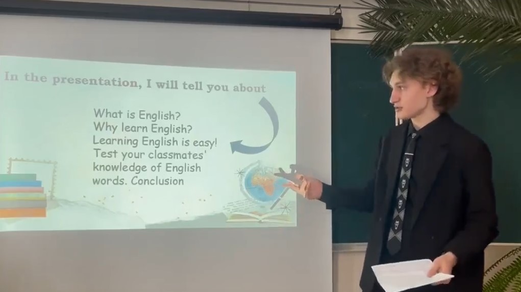 Юноша принял участие в конкурсе по английскому языку «Умею сам — учу других!». Само название конкурса говорит о его необычном формате: здесь важно не только продемонстрировать собственные знания, но и вдохновить на изучение языка других.