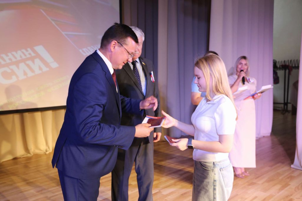 Во время праздничного мероприятия состоялась торжественная церемония вручения паспортов представителям молодого поколения – Анастасии Емелиной, Ксении Антоновой и Диане Гориной. Важные документы вручили В.Н. Василенко, С.А. Смирнов и С.С. Гнедов, начальник миграционного пункта.