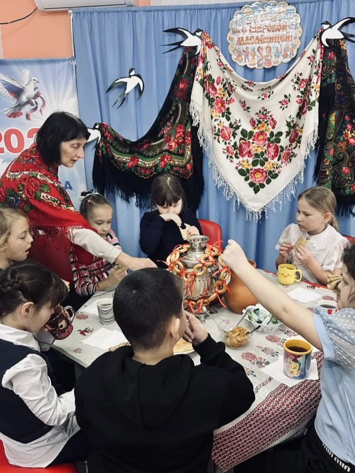 Особую радость детям подарил скоморох, который не только забавлял их шутками, но и угостил румяными блинами. Завершился праздник традиционным чаепитием — школьники с аппетитом уплетали блины с разными начинками, провожая зиму и встречая весну.