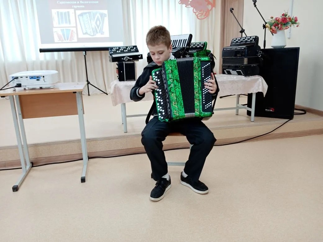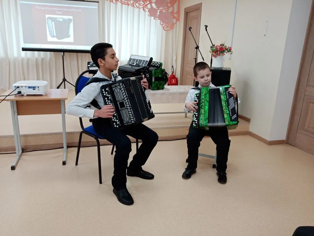 В рамках всероссийского проекта «Культура для школьников» в детской школе искусств Кашарского района произошло по-настоящему душевное событие. Преподаватели Наталья Петровна Стеблина и Валентина Владимировна Васильченко собрали юных музыкантов и зрителей, чтобы поговорить о самом певучем, самом народном — о баяне и аккордеоне.