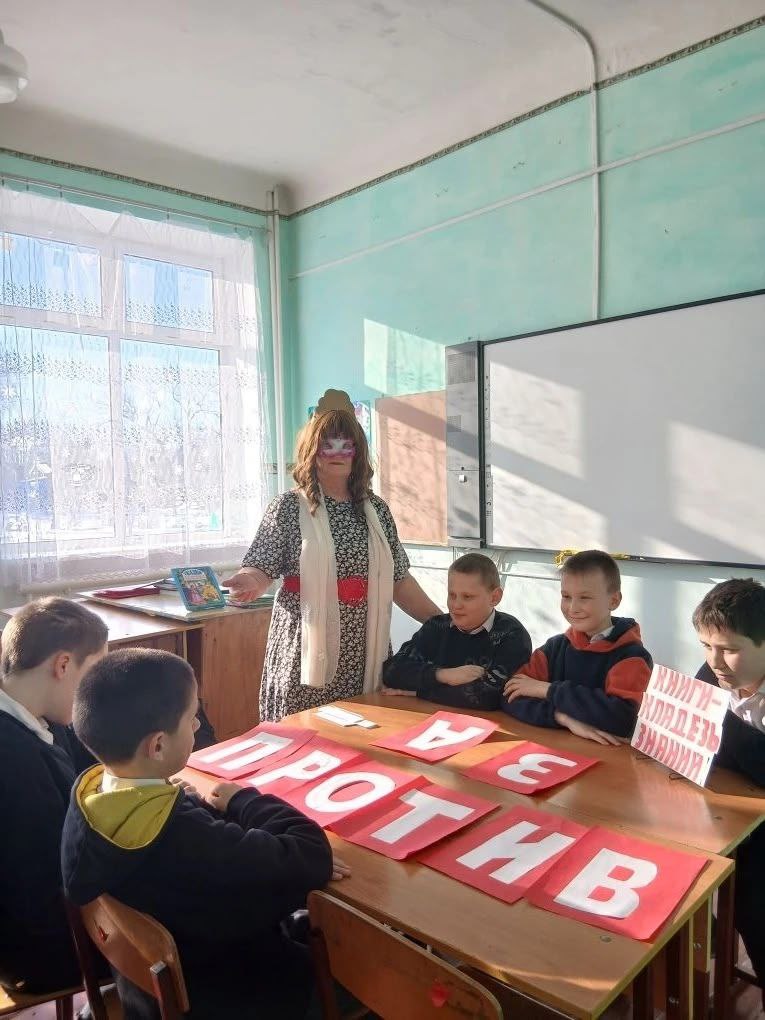 Библиотекарь, перевоплотившись в книжную Фею, обозначила правила и предложила ребятам разделиться на две команды: «За» и «Против». Участники старались приводить убедительные аргументы, а затем задавали друг другу вопросы, отвечая на них чётко и понятно.