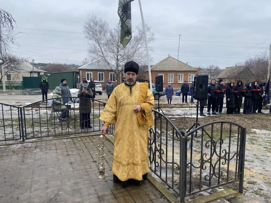 Митинг начался с панихиды — отец Игорь отслужил службу по погибшим воинам, благословил живых и напомнил, как важно хранить память о героях.