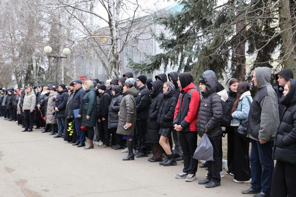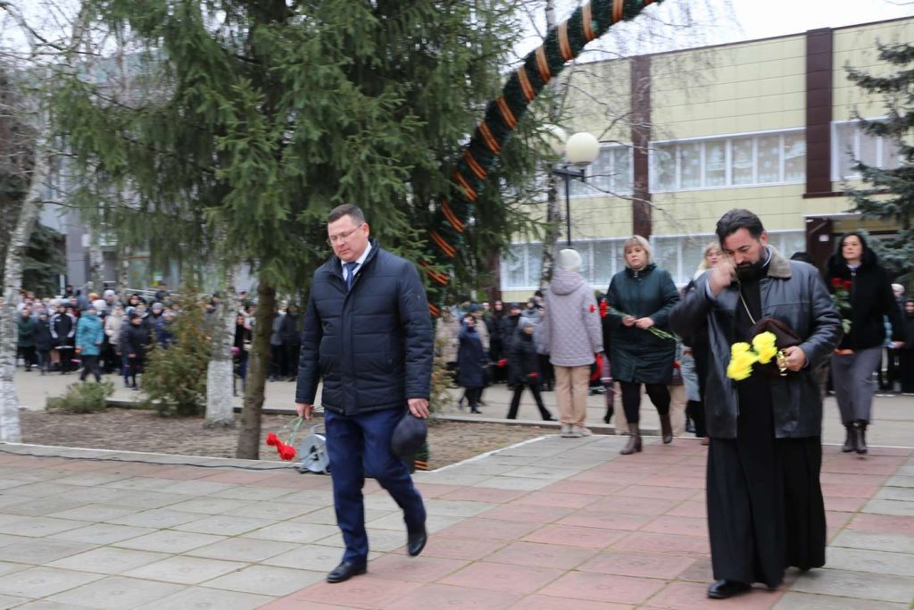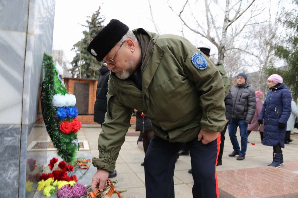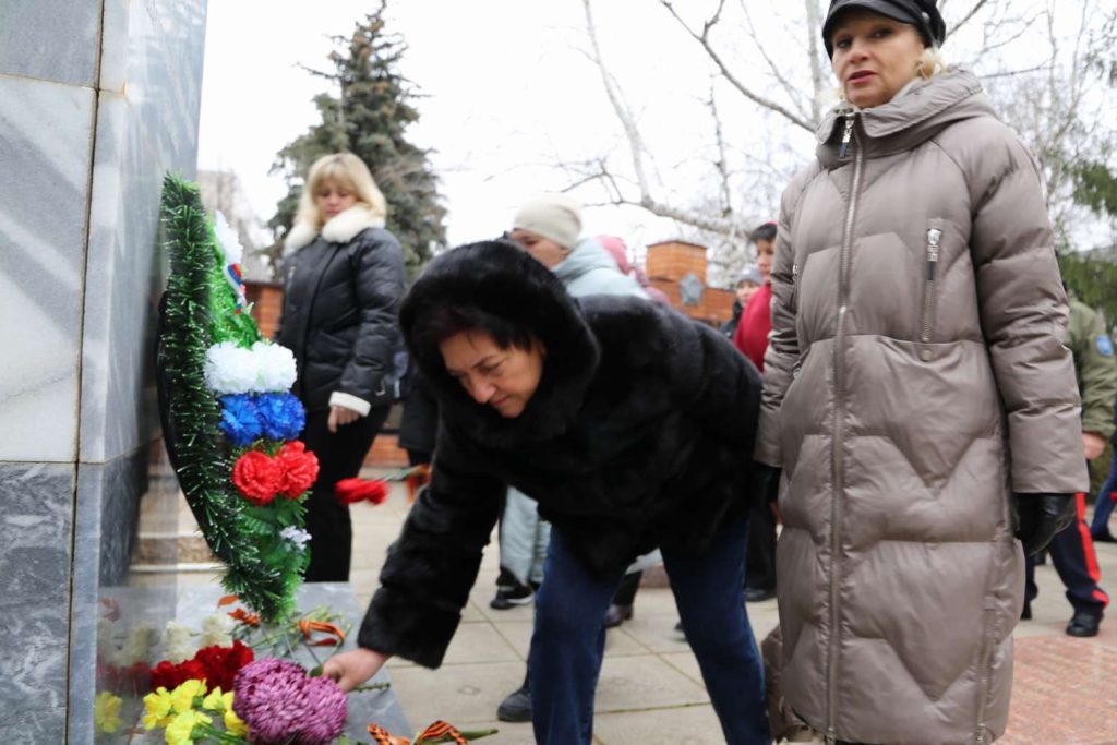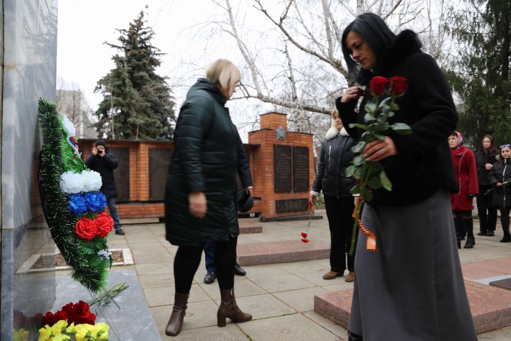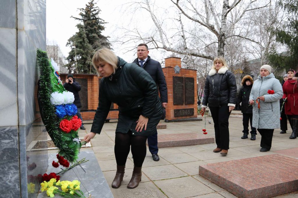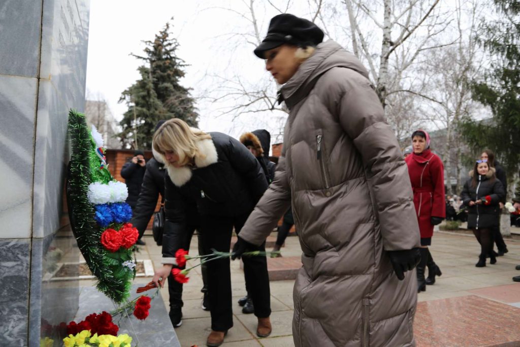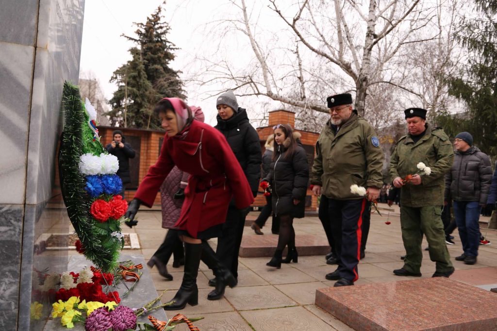 Участники митинга почтили память героев минутой молчания. Затем прошла церемония возложения цветов к памятнику павшим героям-землякам.