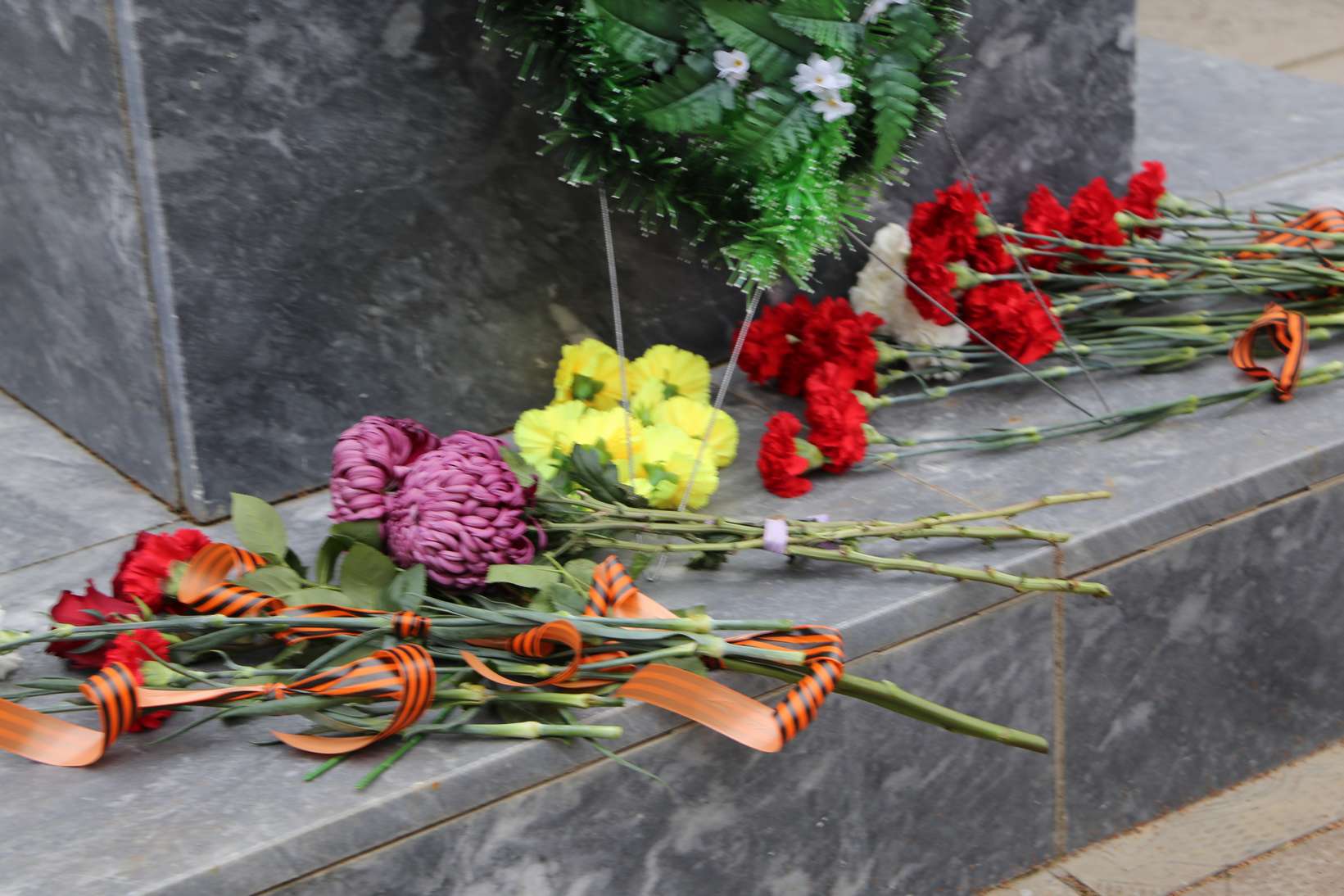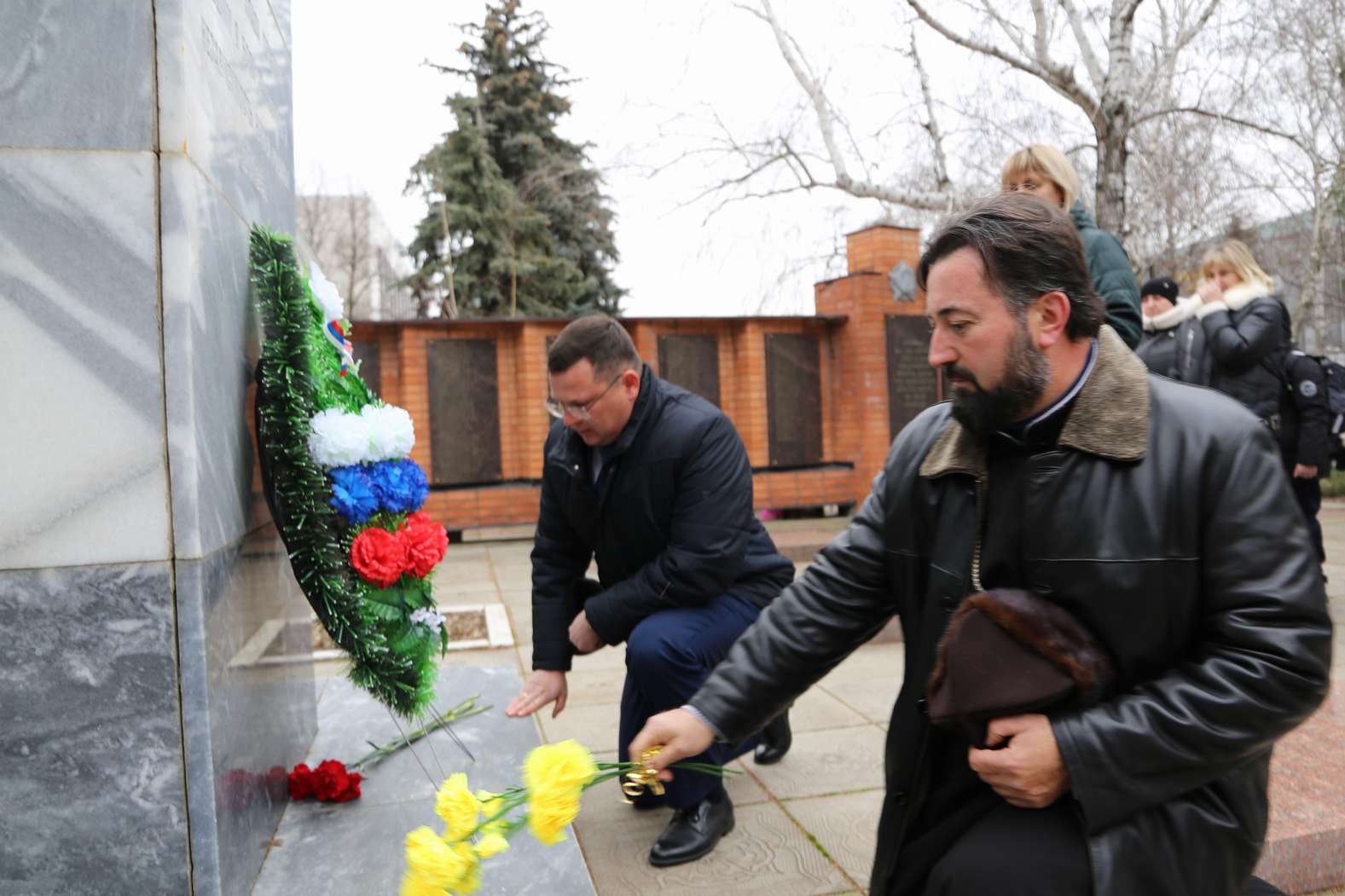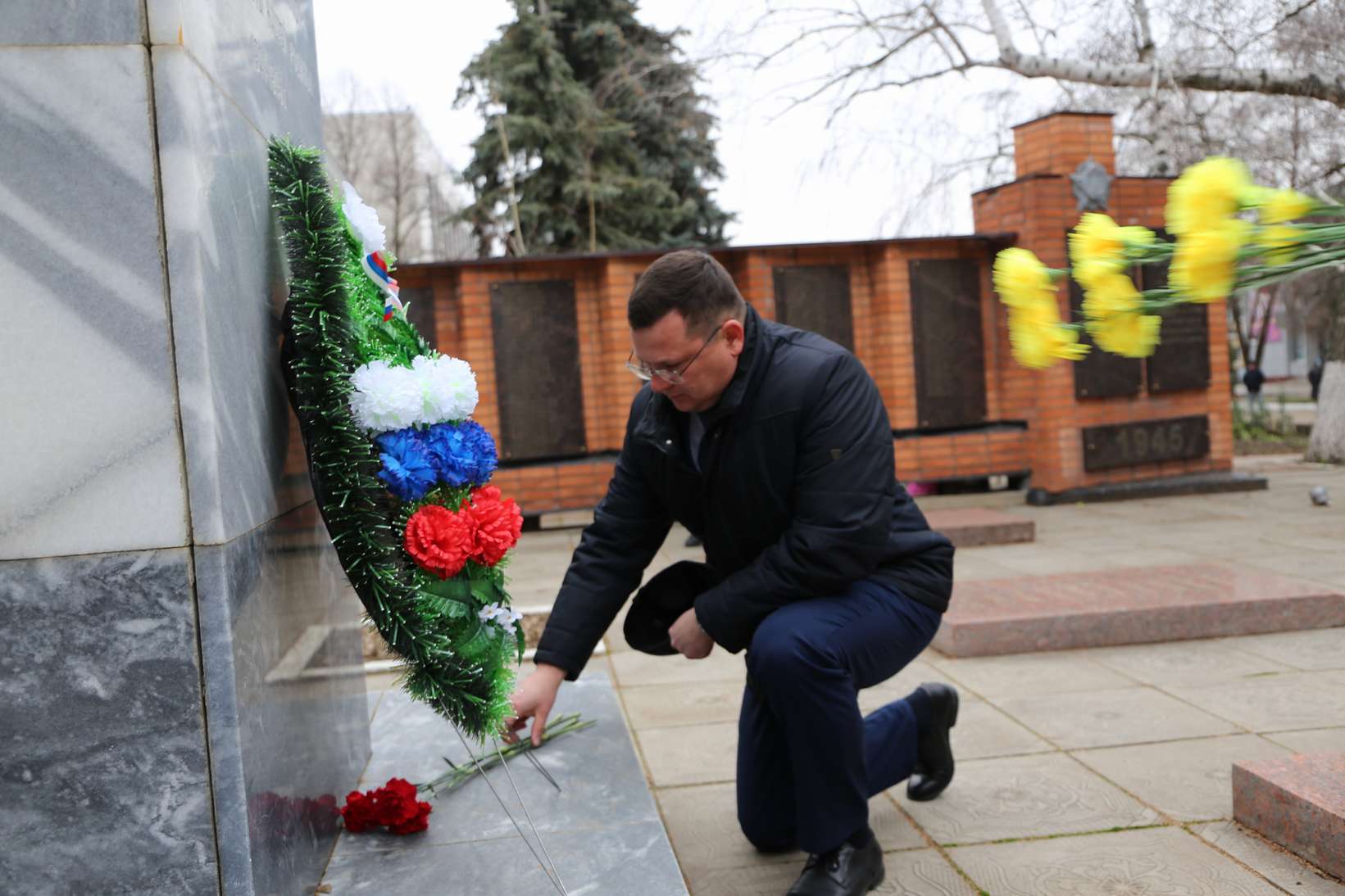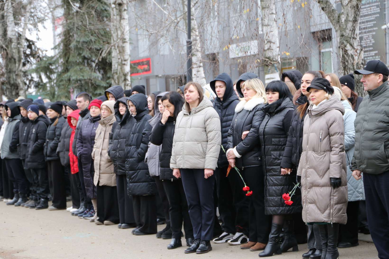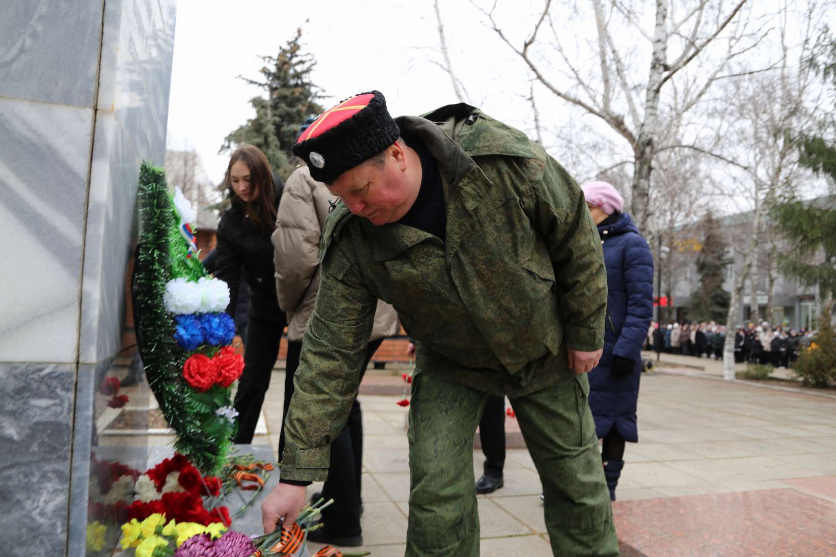 Участники митинга почтили память героев минутой молчания. Затем прошла церемония возложения цветов к памятнику павшим героям-землякам.