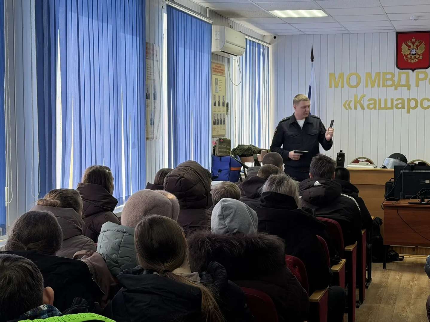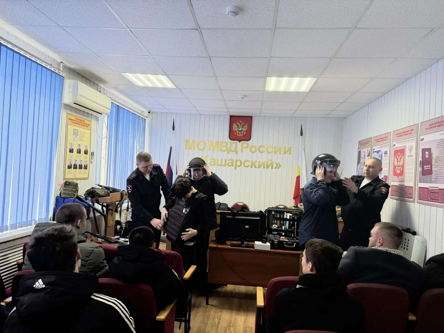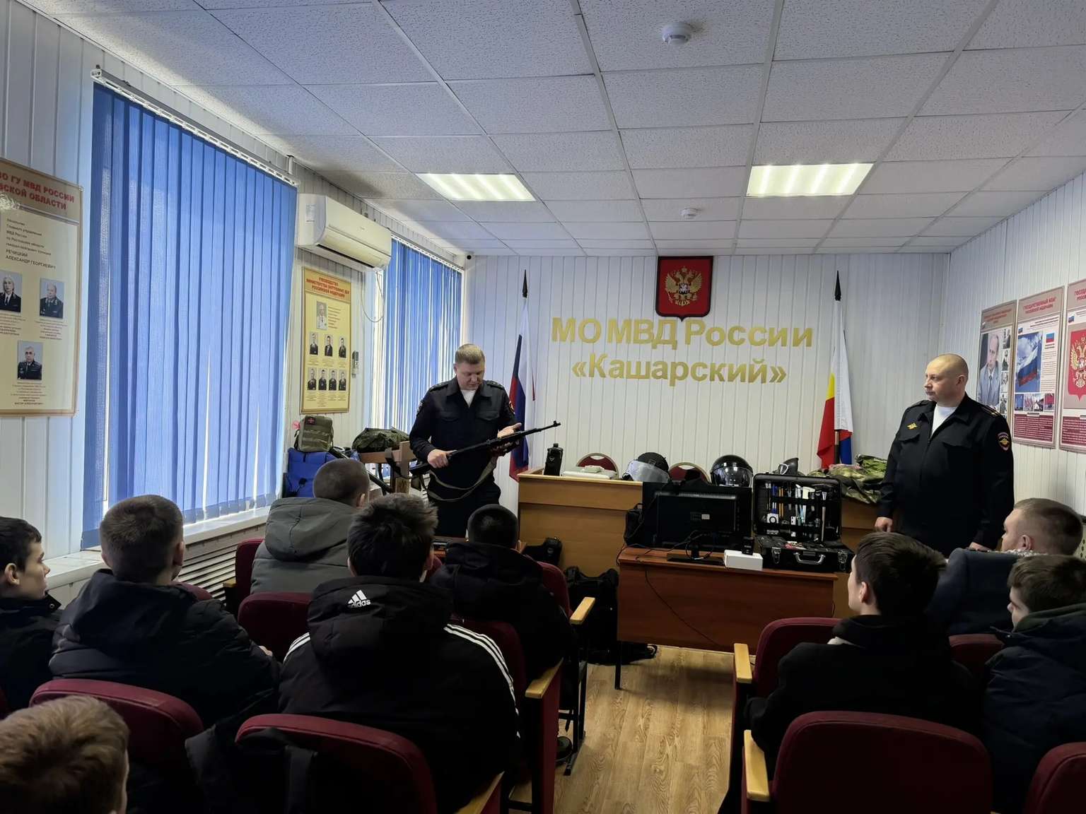 Полицейский класс Кашарского района на один день сменил учебные парты на служебные кабинеты и учебный полигон. Сотрудники Межмуниципального отдела МВД России «Кашарский» провели для школьников не просто экскурсию, а настоящий практический день службы.