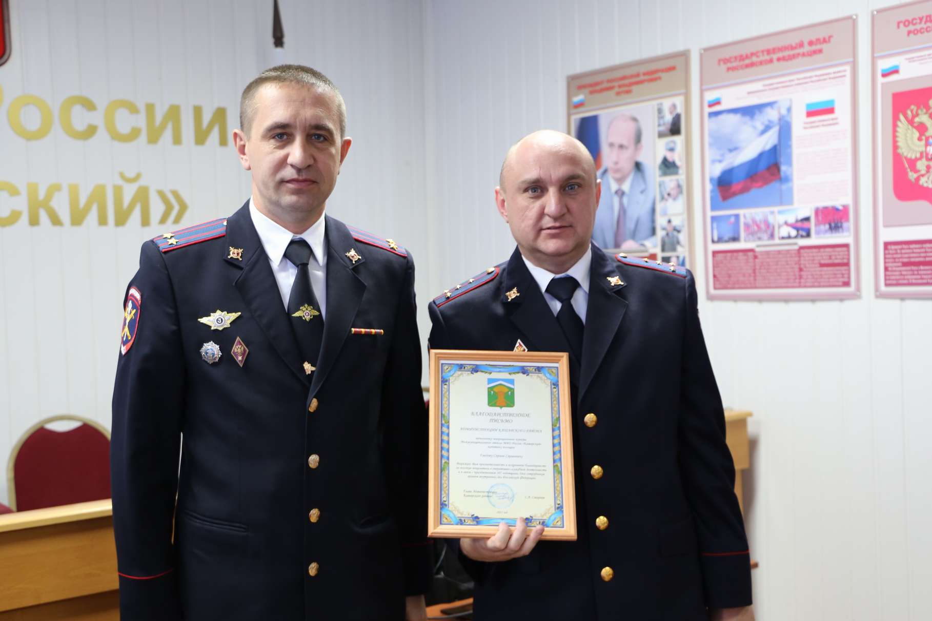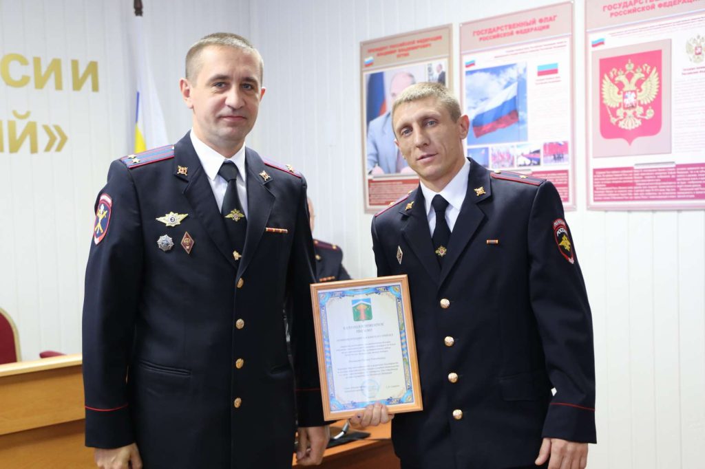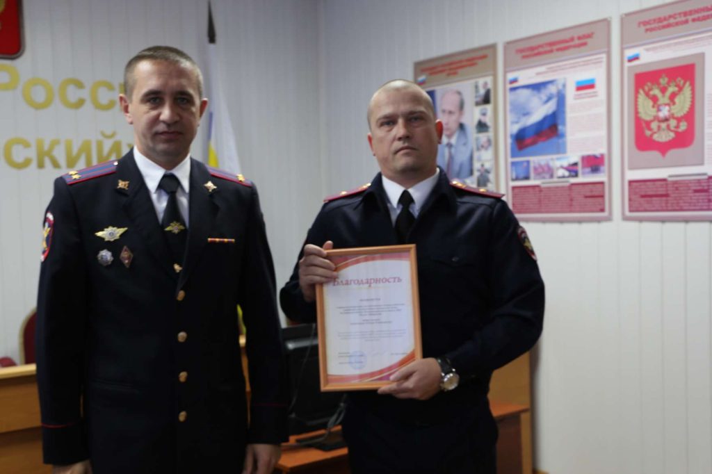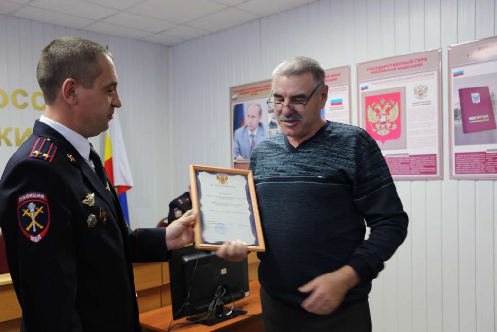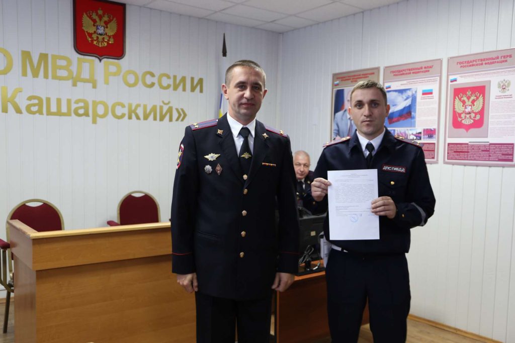 Благодарность начальника МО МВД России «Кашарский» А.С. Бесхлебнова вручена: