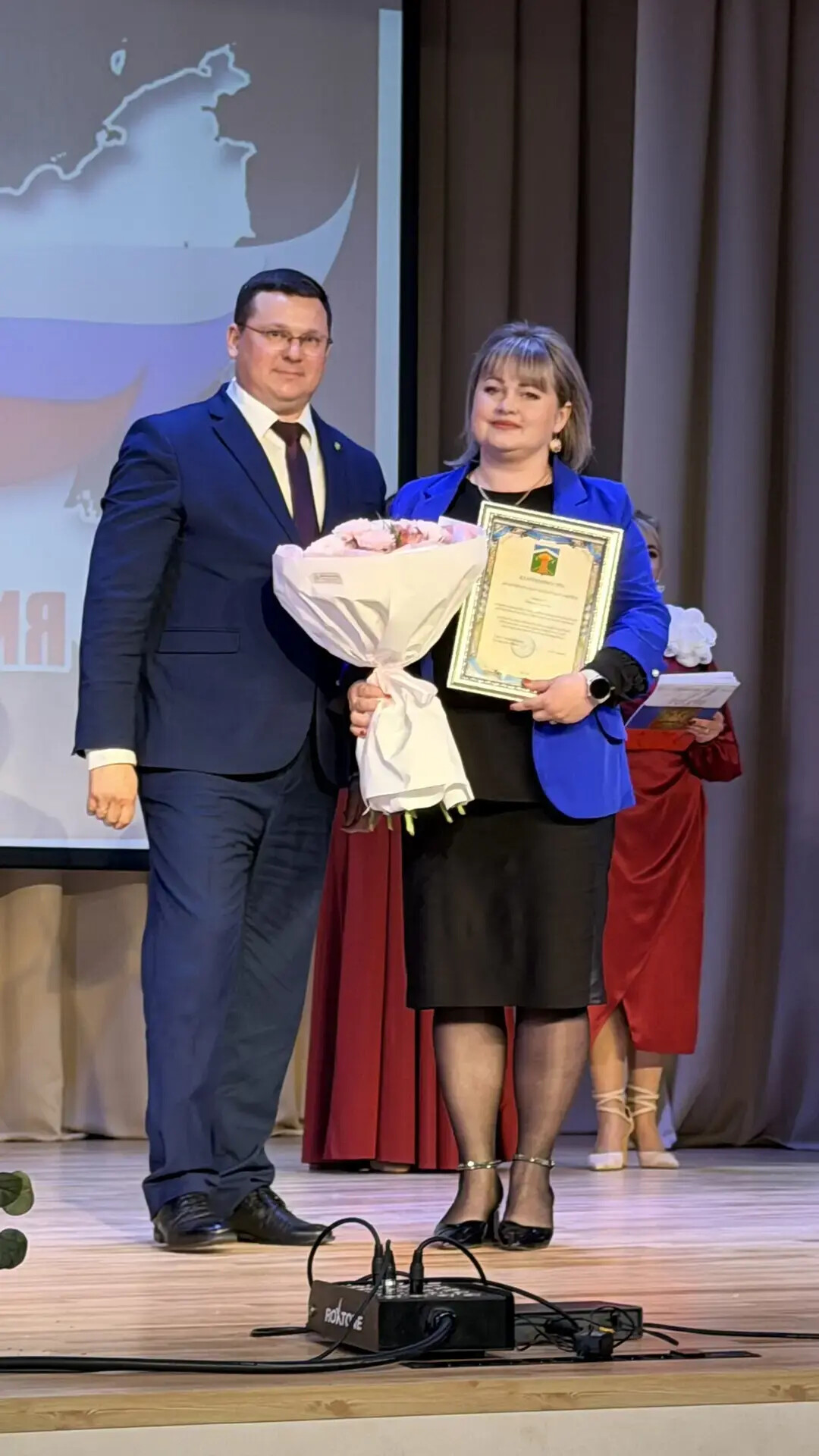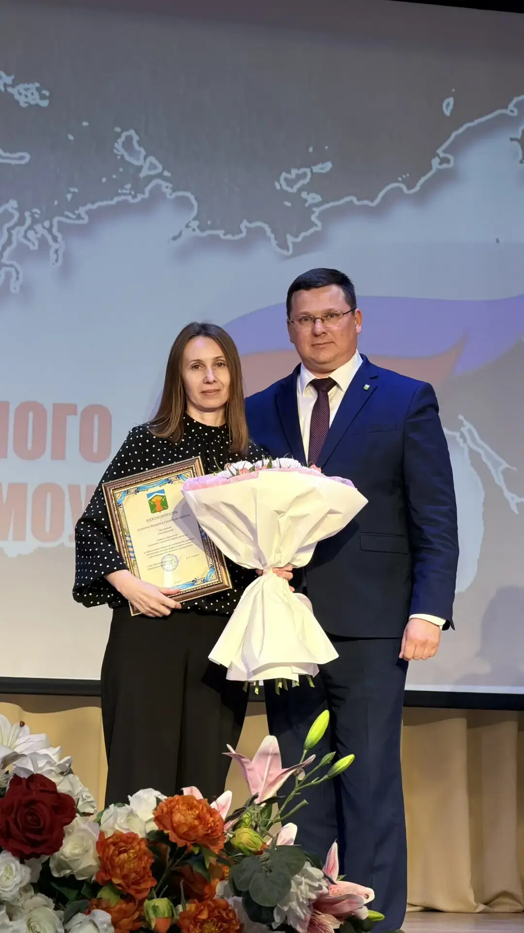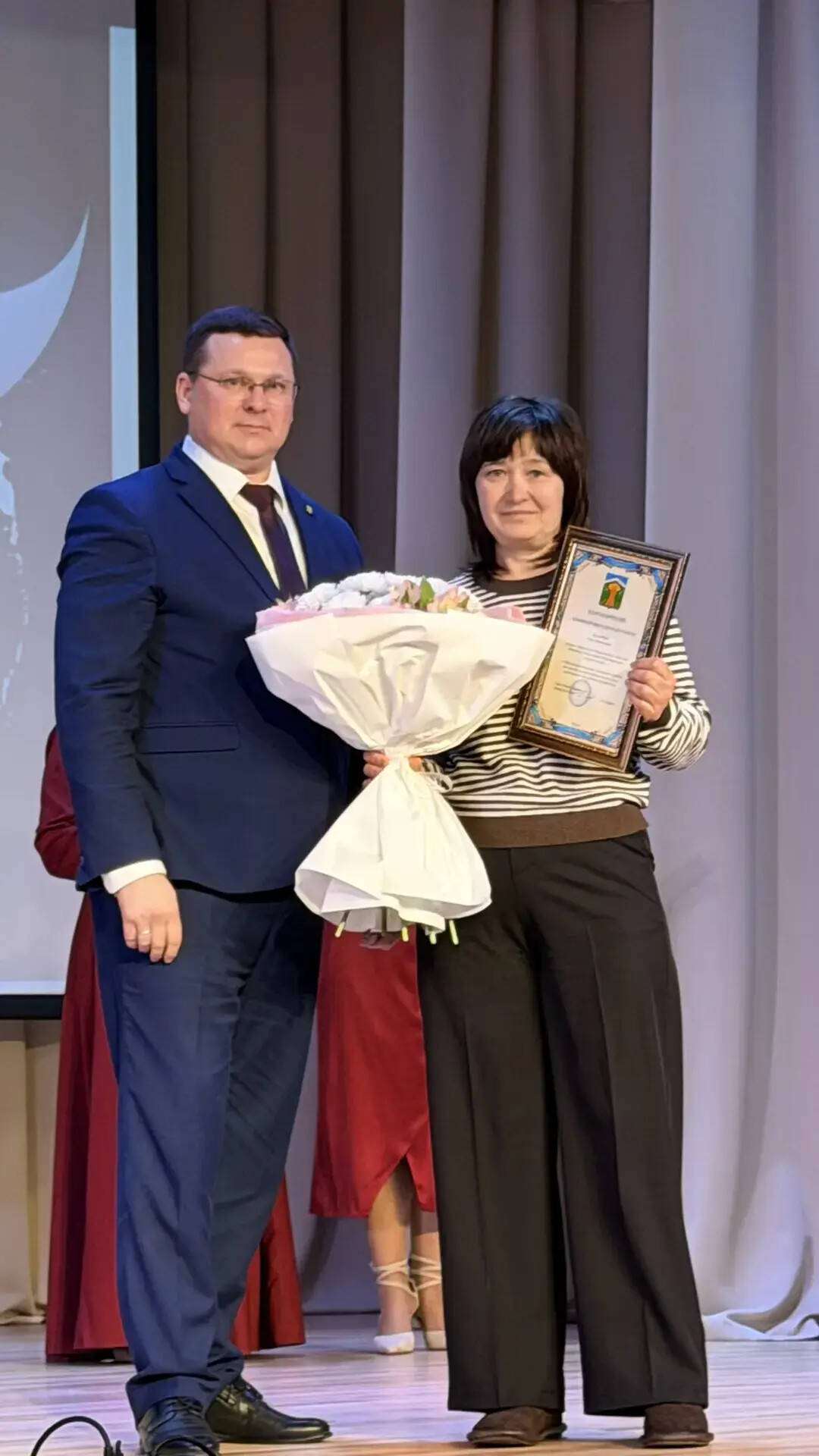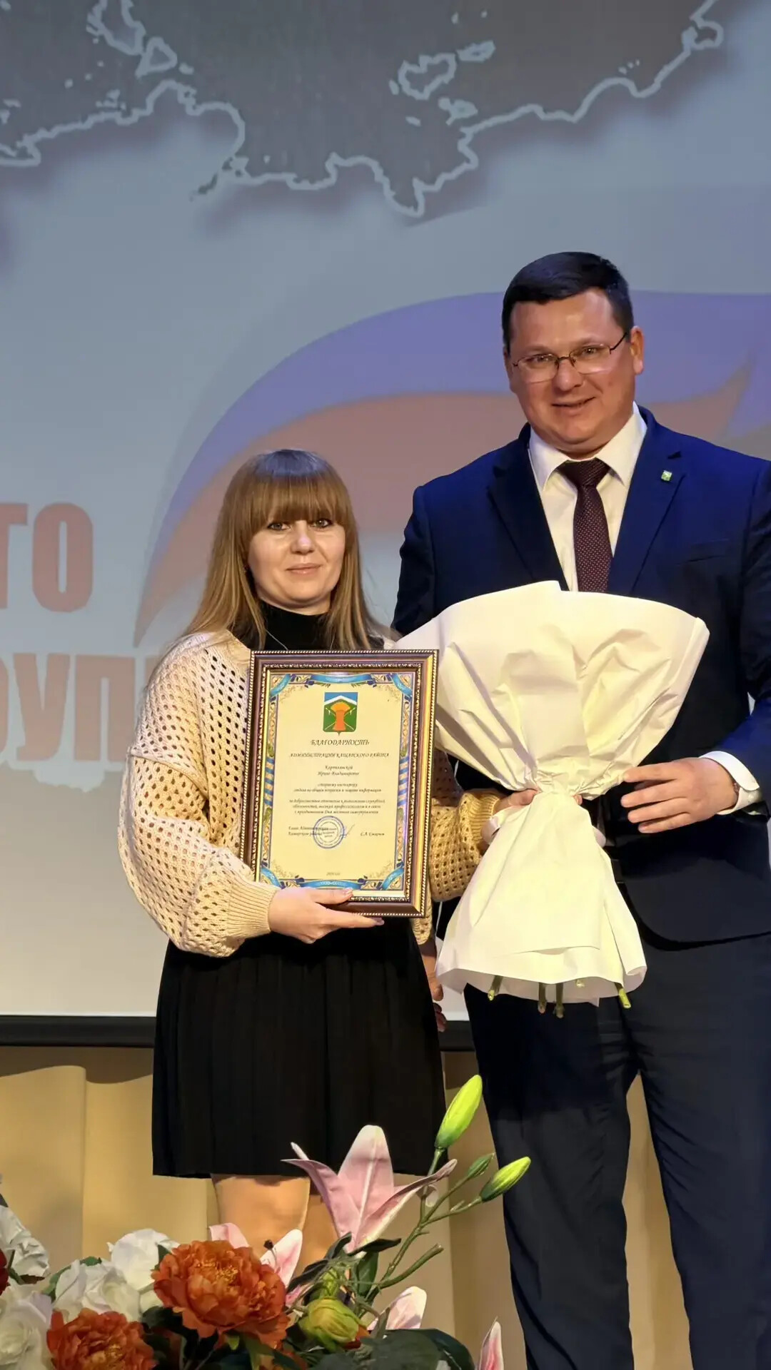 В концертной программе прозвучали тёплые слова благодарности в адрес тех, кто ежедневно трудится на благо района — депутатов, сотрудников администраций поселений и специалистов.