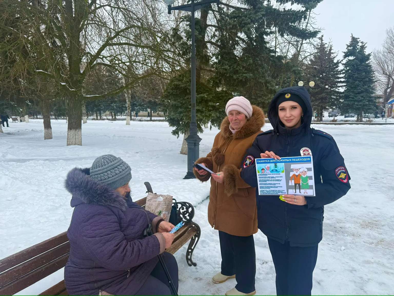 В рамках акции водителям и пешеходам «серебряного возраста» вручили информационные листовки и световозвращающие элементы, напомнив, как важно быть заметными на дороге в тёмное время суток.