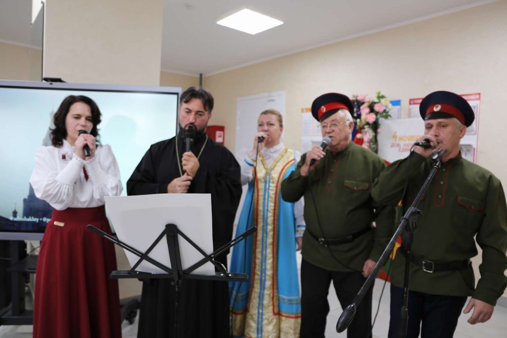 Для собравшихся в зале прозвучала песня «Колокольный звон» в исполнении солистов самодеятельного хорового коллектива «Родные напевы».