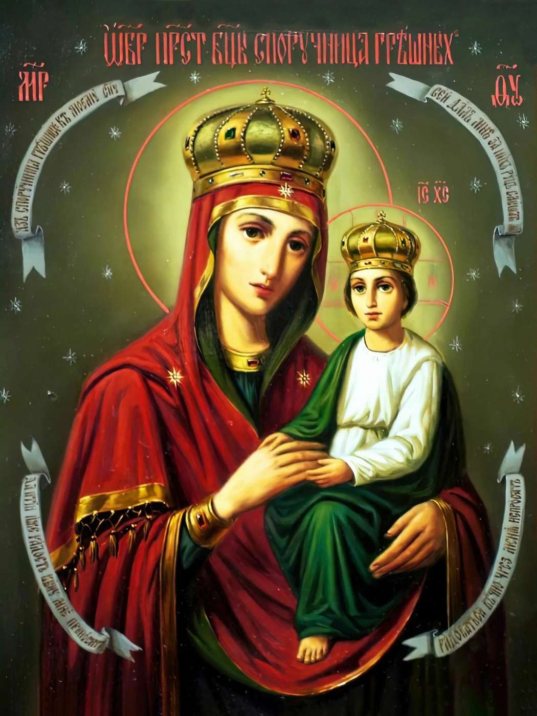 Икона Божией Матери «Споручница грешных». Это одна из самых почитаемых святынь. Перед этим образом верующие молятся о прощении грехов, избавлении от соблазнов, исцелении от болезней. Название «Споручница» означает «Поручительница» — Богородица берёт на себя ответственность молить Сына за кающихся грешников.
