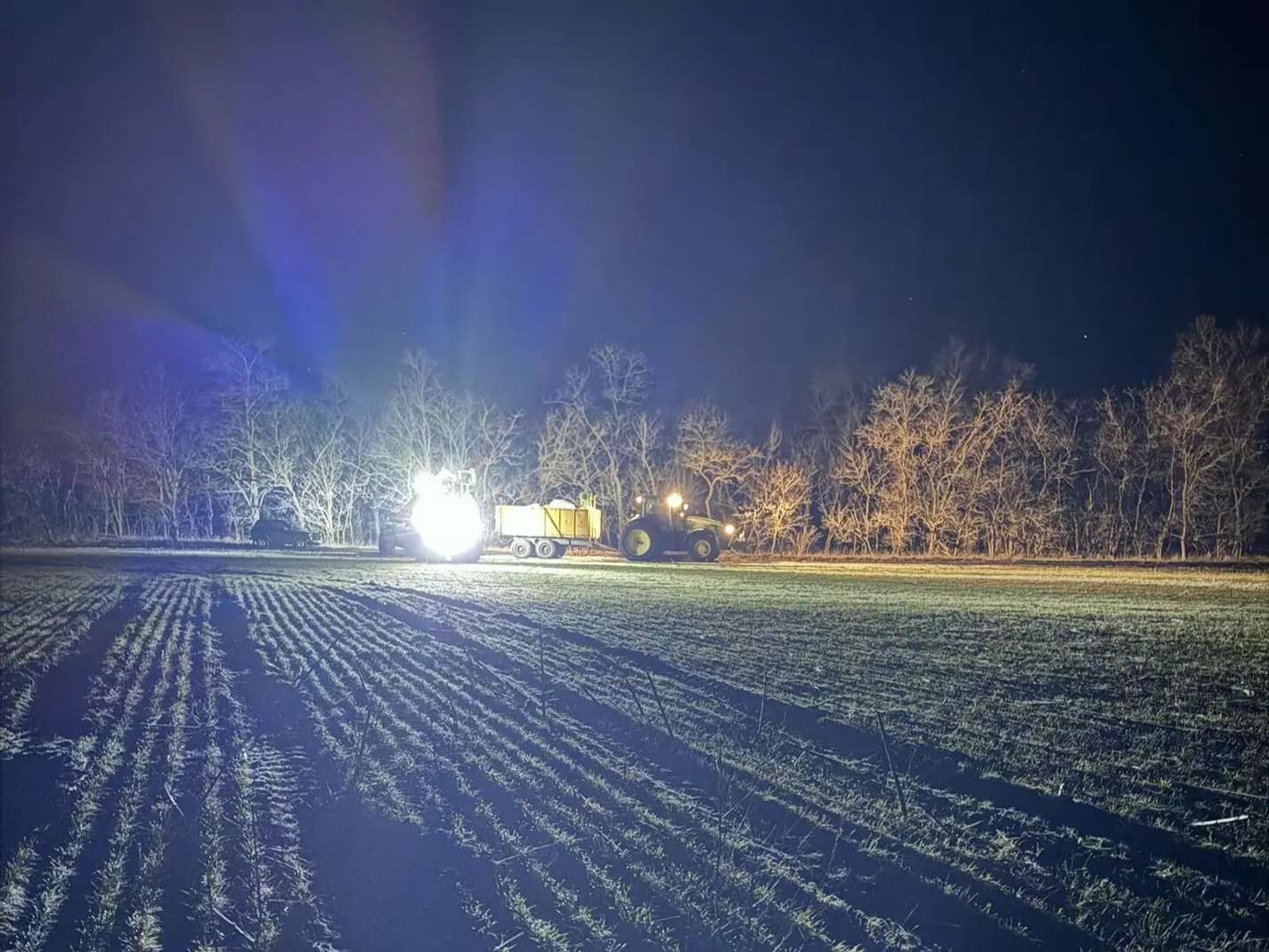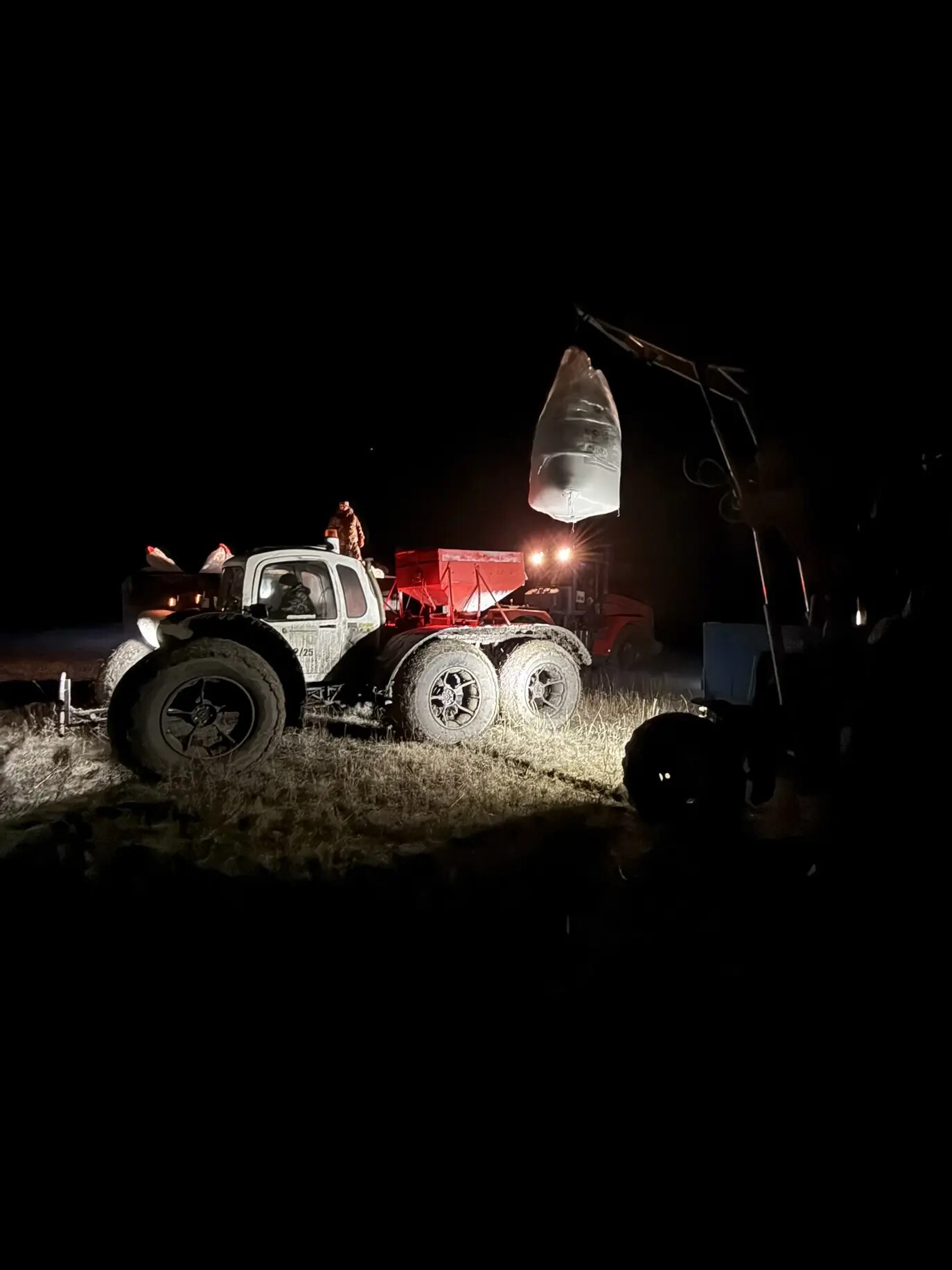 Здесь работа идёт в тёмное время суток. Пока почва держится, техника выходит в поля с вечера и трудится до утра. Это позволяет успеть подкормить максимальные площади до того, как земля окончательно оттает.