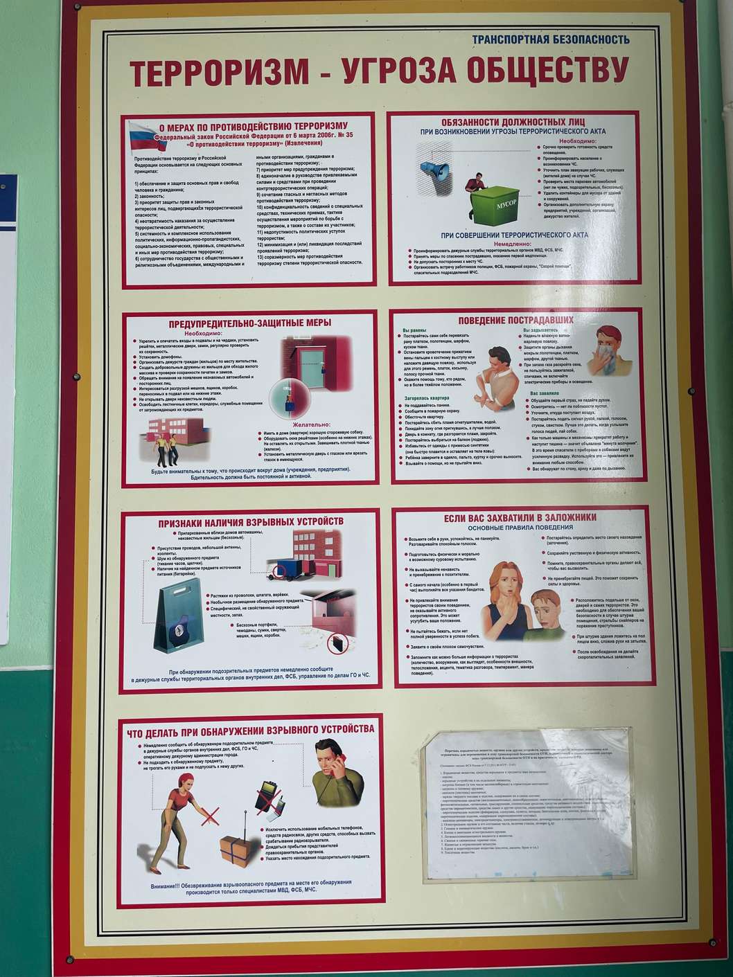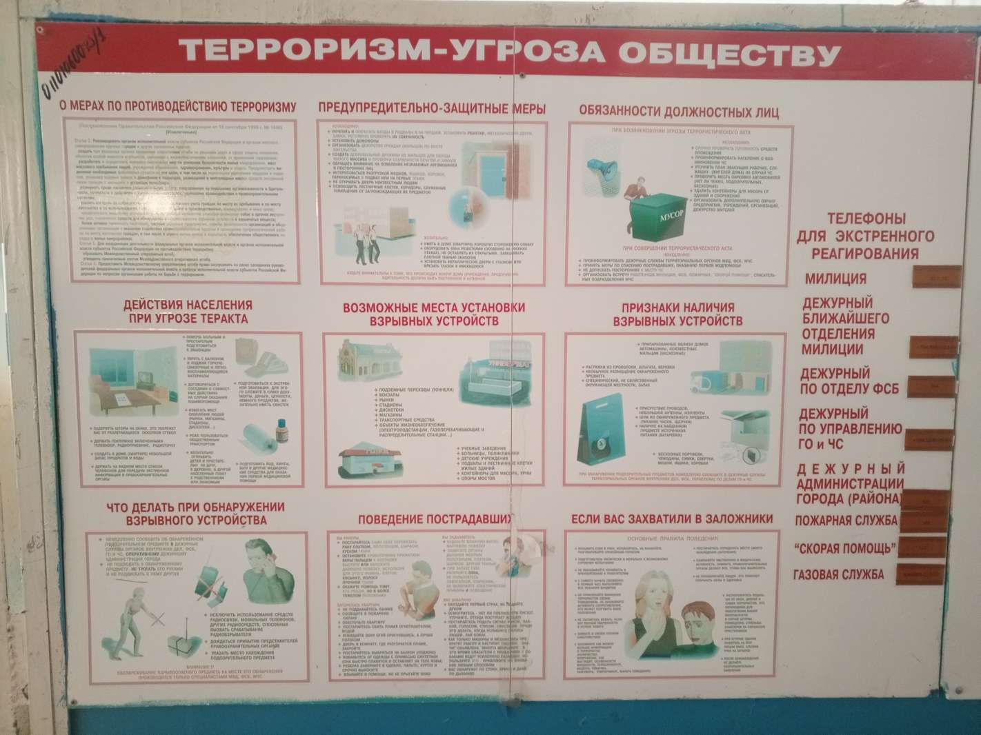 На таких стендах можно найти пошаговую инструкцию о том, как вести себя во время теракта или при обнаружении подозрительных предметов.