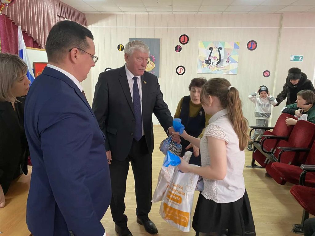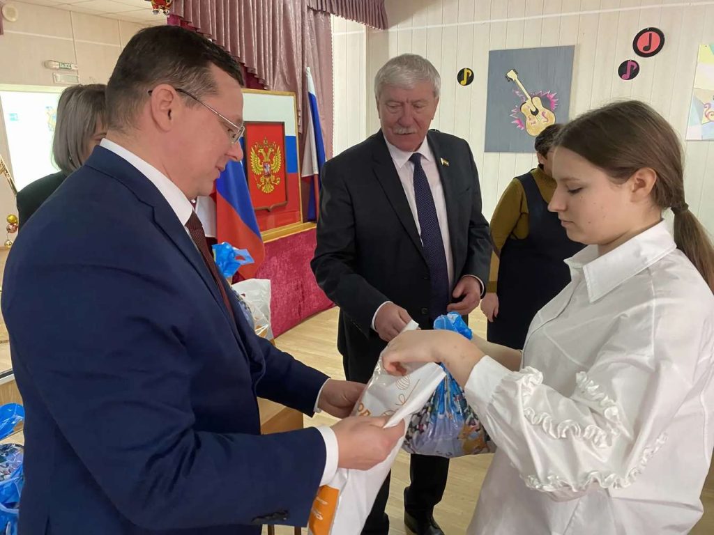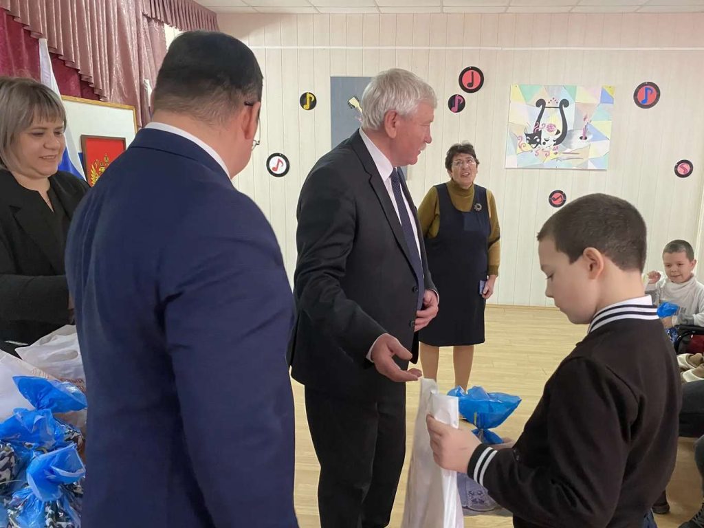 В ходе рабочей поездки в Кашарский район депутат Заксобрания Ростовской области В.Н. Василенко в сопровождении главы администрации района С.А. Смирнова побывал в Первомайской школе, где пообщался с детьми участников СВО школьного и дошкольного возраста.