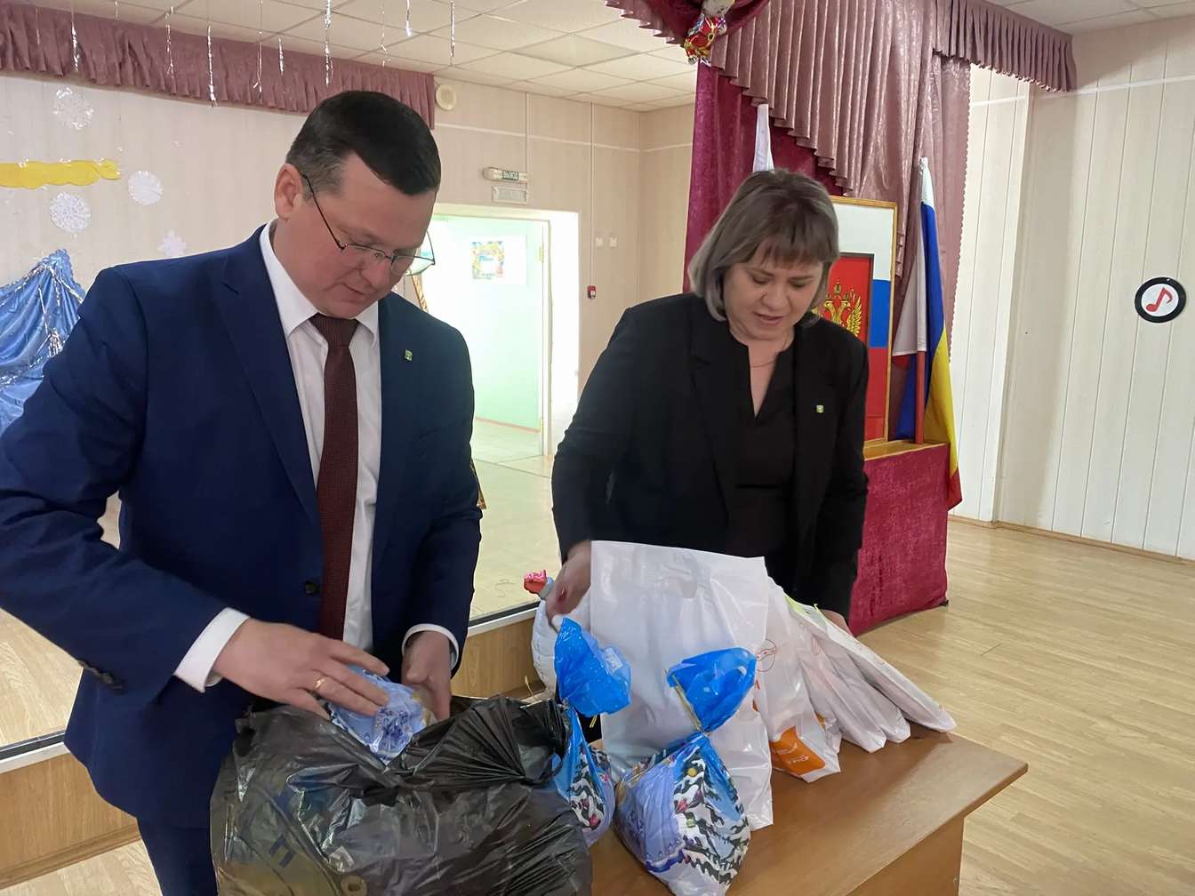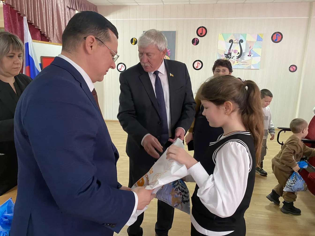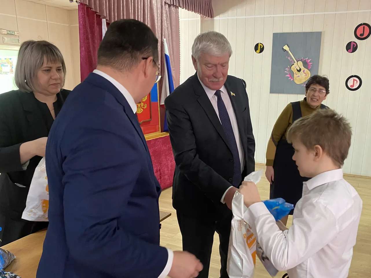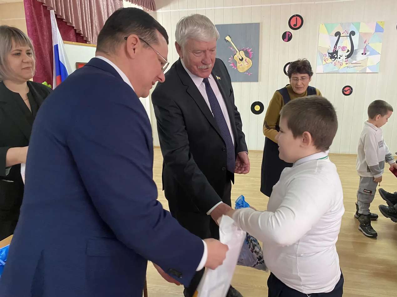 В ходе рабочей поездки в Кашарский район депутат Заксобрания Ростовской области В.Н. Василенко в сопровождении главы администрации района С.А. Смирнова побывал в Первомайской школе, где пообщался с детьми участников СВО школьного и дошкольного возраста.