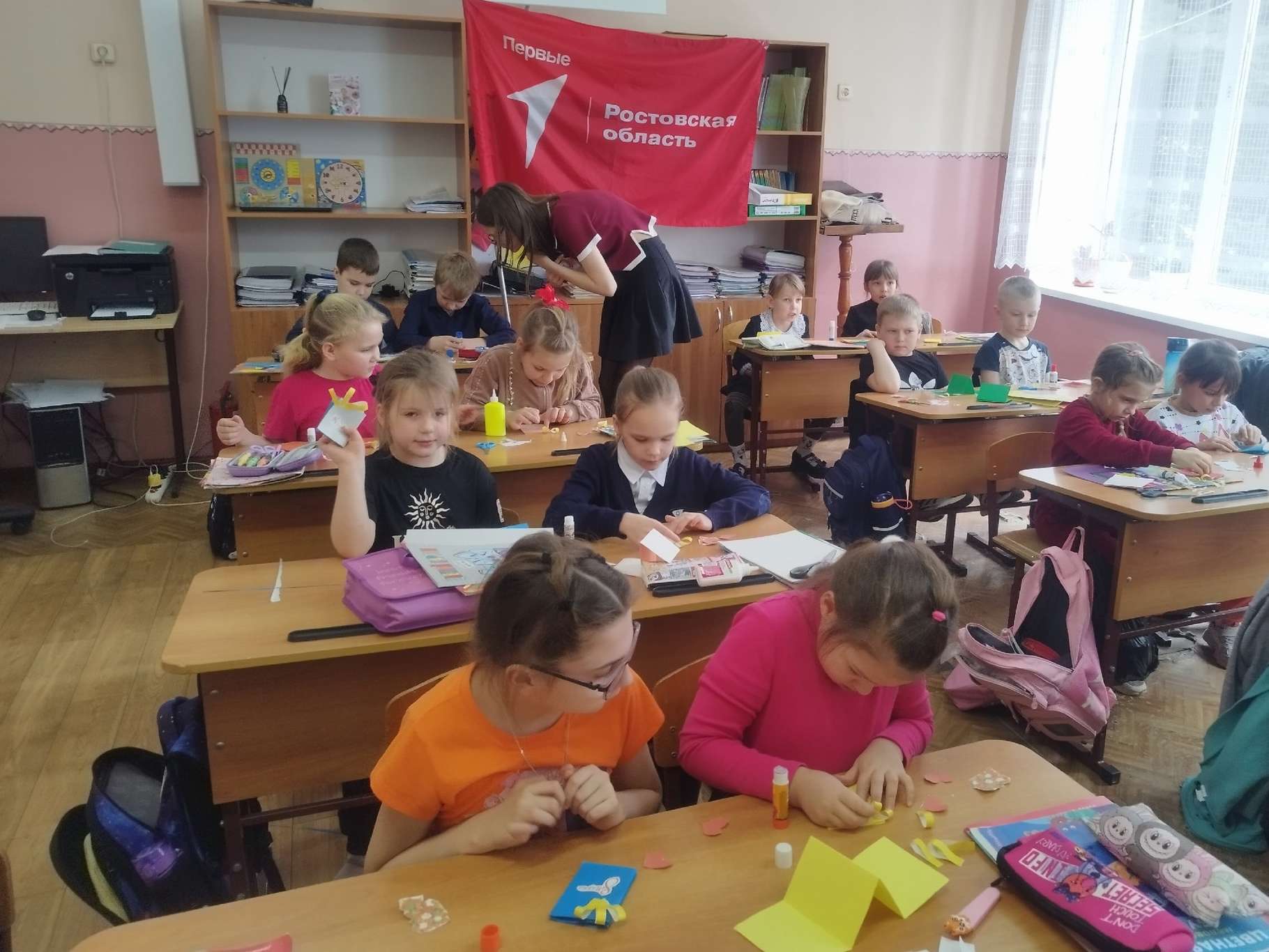 В Поповской школе Кашарского района прошло творческое занятие, которое запомнится его участникам надолго. Под руководством советника директора по воспитанию Ю.А. Гекало и председателя ПО М.А. Гречишниковой активисты Движения Первых организовали для учеников начальных классов — участников проекта «Орлята России» — увлекательное задание по созданию «Книжек тёплых слов».