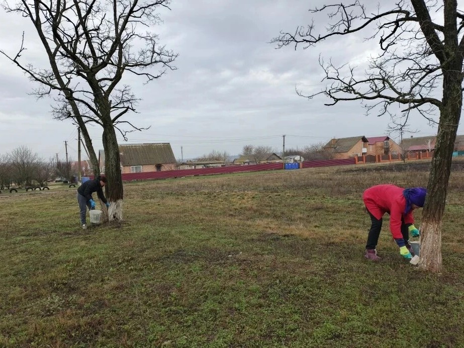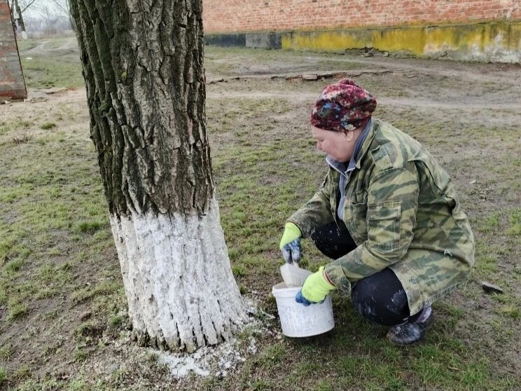 Побелка деревьев весной — это не просто забота, а добрая традиция Фомино-Свечниковского поселения Кашарского района. И в этом году её не нарушили.