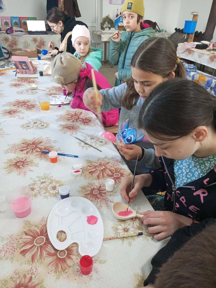 А потом — роспись. Каждый украсил свою ложку по своему вкусу, создав настоящую авторскую поделку. Юные мастера-ложкари почувствовали себя настоящими умельцами. Останется только покрыть лаком — и ложка готова к выступлению на праздничном концерте, который ребята готовят ко дню Святой Троицы.