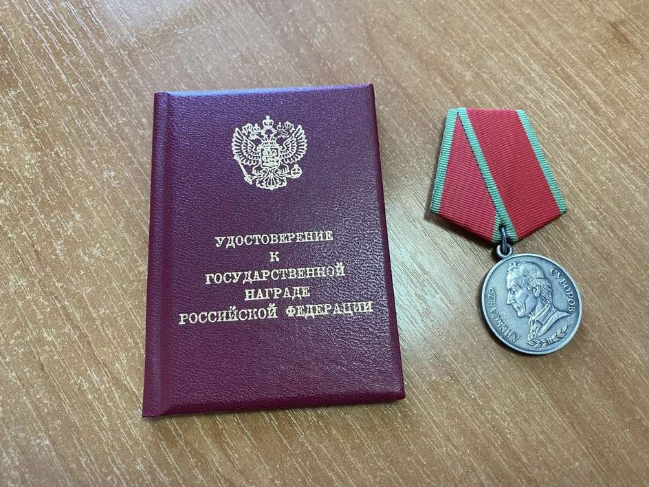 За личное мужество и отвагу, проявленные при защите Отечества, награждён медалью «Александр Суворов».